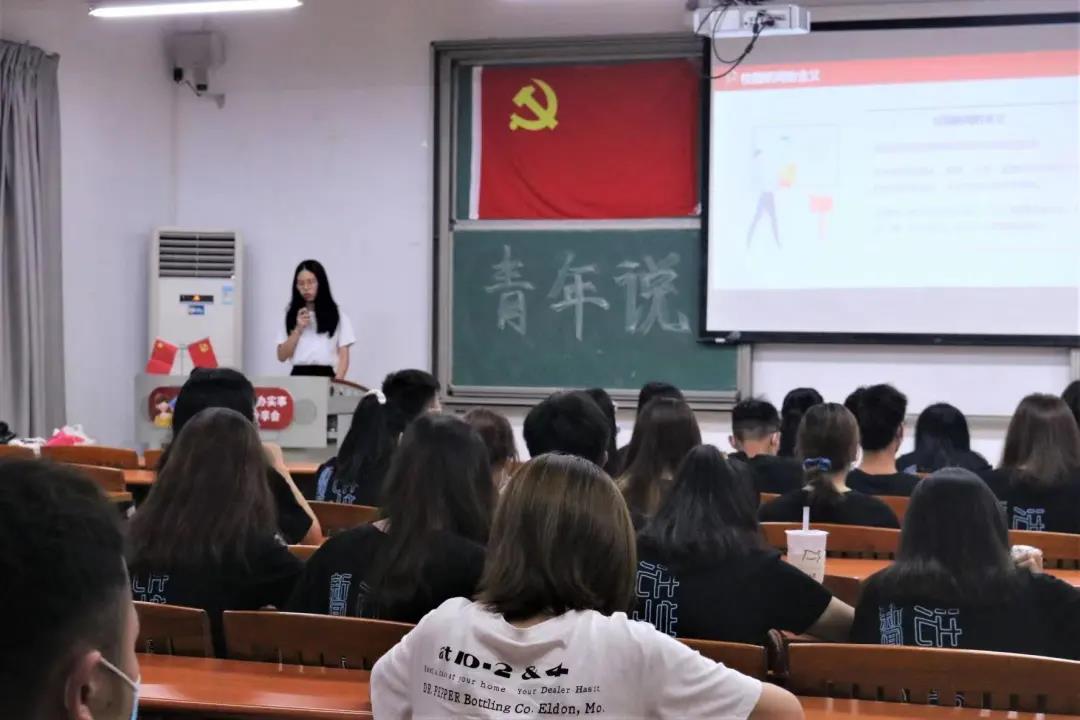 会议开始,全体起立奏唱国歌。随后,法学院学生党支部宣传教育小组组长何秋玲与大家就“如何撰写好新闻稿”这一话题展开讨论。