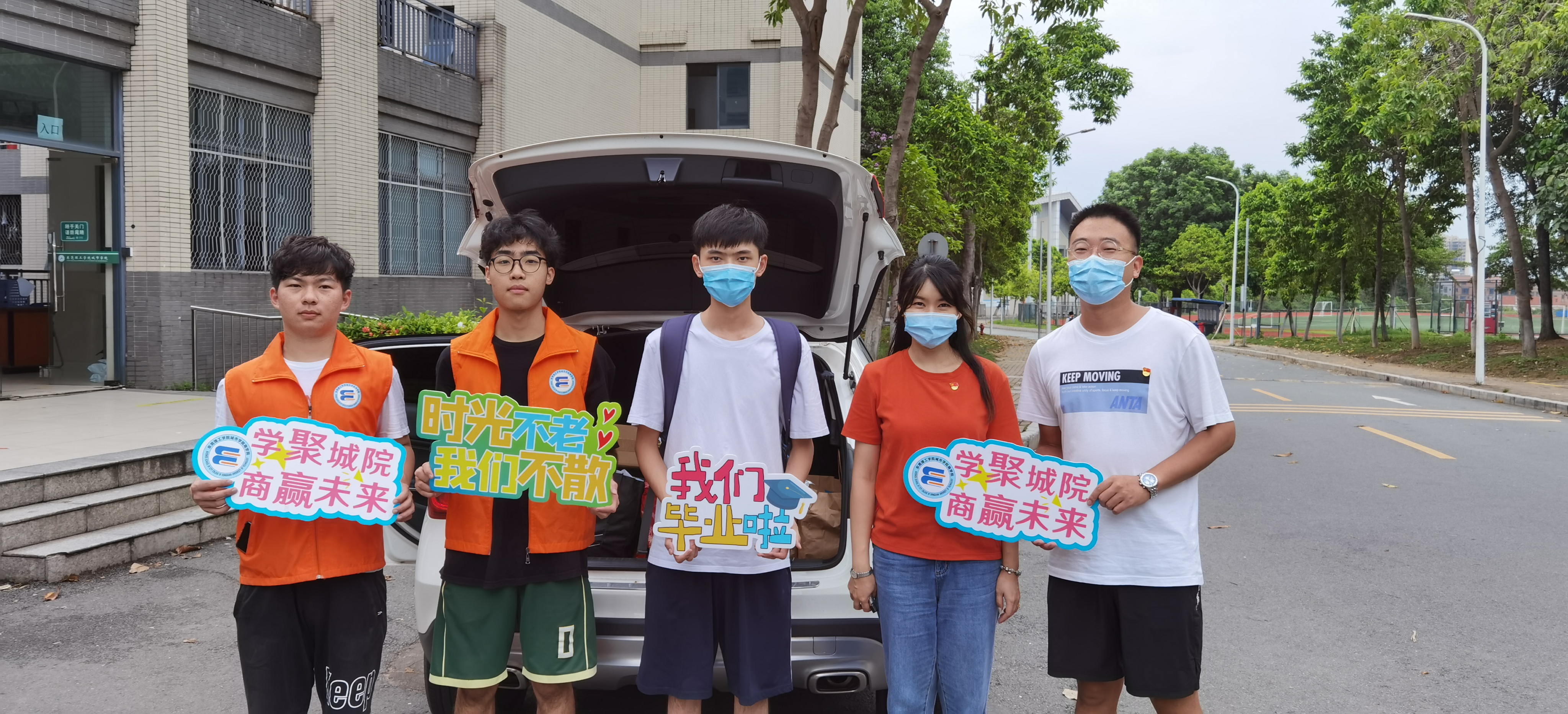 爱心车队,保驾护航。疫情防控期间,按防控要求毕业生家长无法进校帮助学生搬运行李,商学院院长罗卫国、党总支书记唐洁等学院教辅人员和学生志愿者,自发组成爱心车队,协助毕业生搬运行李,开车把学生送到校门口,获得了毕业生们的高度评价。很多同学深受感动,纷纷表达了对学院的感谢,对老师的感激,对毕业离校的不舍。爱心车队从上午一直工作到傍晚,直到送出最后一名毕业生才结束。