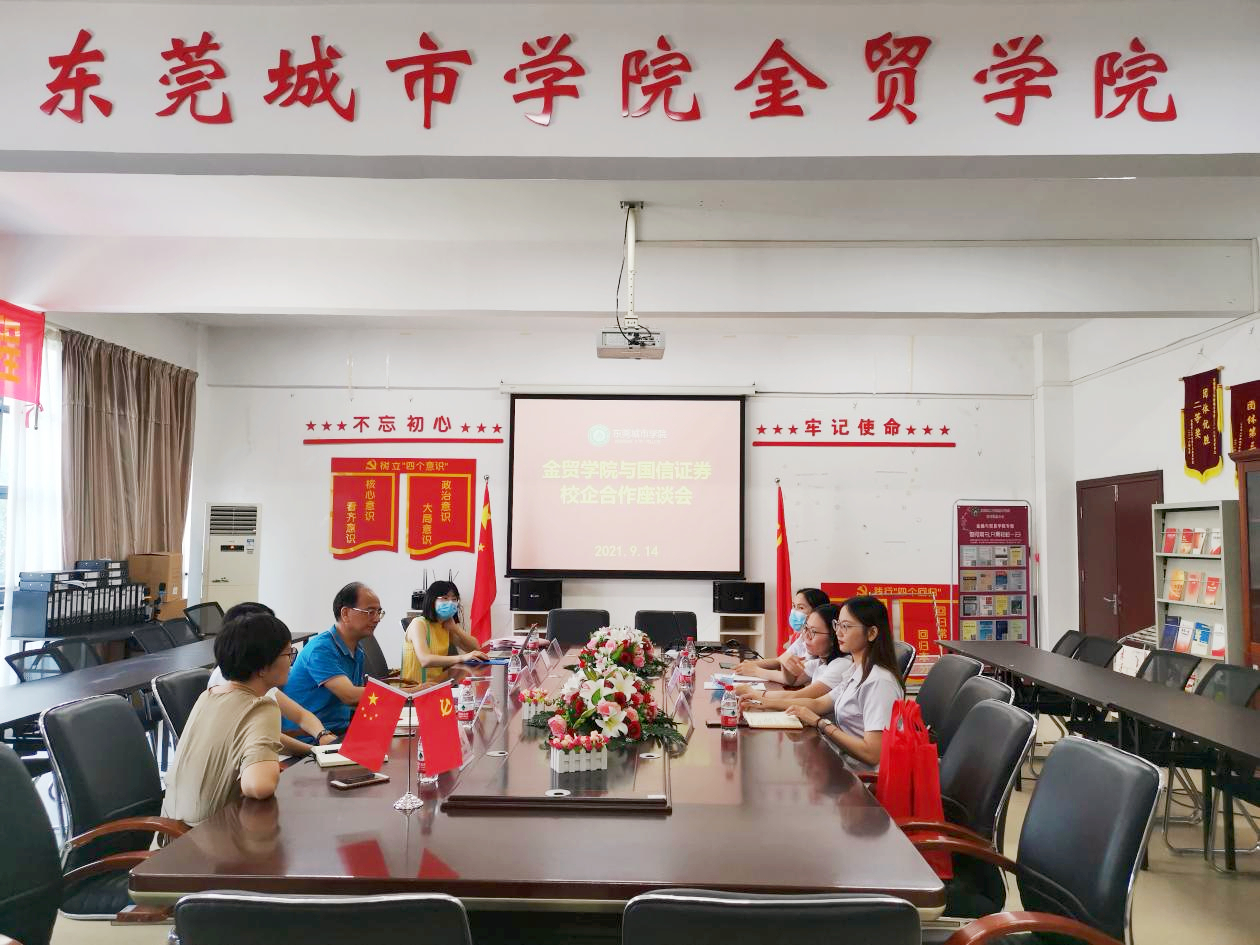 随着我国高等院校教学改革的不断深入,校企合作成为了我国高等教育发展的重要战略之一,校企合作是我国现代高校教学改革、创新和发展的新方向。为进一步加强与企业的合作,在产学合作结合上取得突破并实现学校与用人单位合作共赢,贯彻科教兴国与人才强国战略, 9月15日,beat365英国官方网站金融与贸易学院与国信证券开展校企合作座谈会,参会人员有国信证券人事部主管麦宇娴、人事部助理钟奕曼、理财顾问陈泽銮,金融与贸易学院院长赖忠孝、副院长侯瑞瑞、党总支副书记万文双。