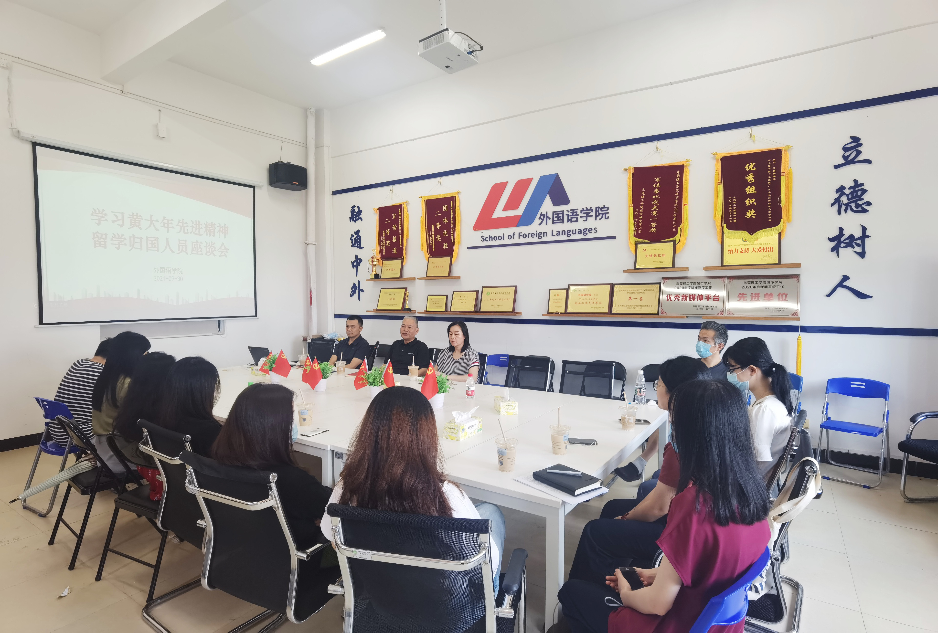 9月30日,为深入学习黄大年同志先进精神,增进留学归国人员之间的学习交流,外国语学院在3A420会议室召开留学归国人员座谈会,出席本次座谈会的有外国语学院院长赵东林,党总支书记、副院长刘浔,党总支副书记都振华,外国语学院全体留学归国教师。本次座谈会由赵东林主持。