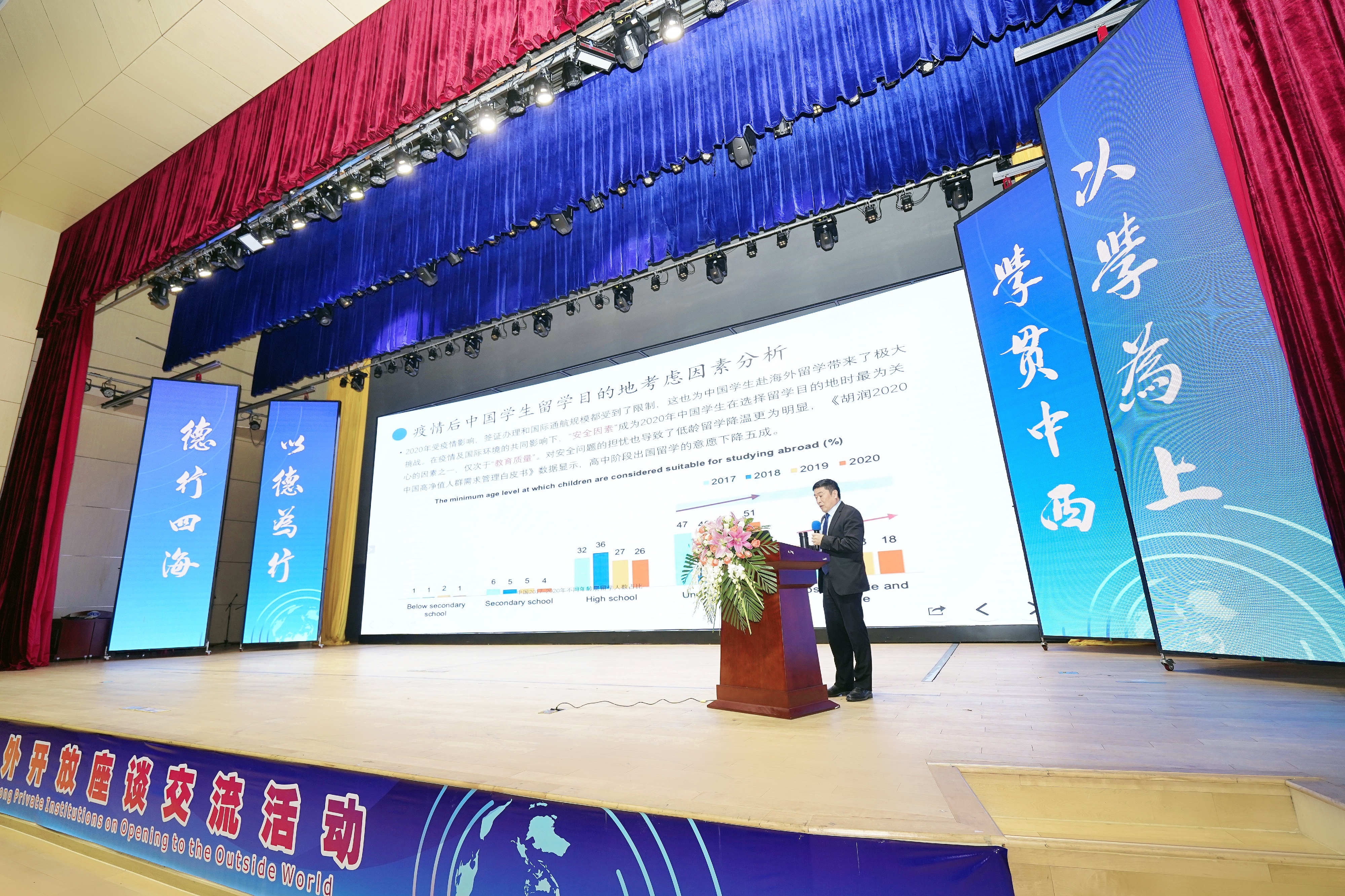 在会议主论坛上,beat365官网李树英执行校长作《后疫情时代跨境交流与合作的机遇与挑战——以大湾区为例》的主题报告。他从疫情前、后留学市场情况变化、疫情后留学生出国意愿分析、疫情后现阶段留学市场趋势分析、怎样与港澳高校开展各类交流合作等方面作详细汇报,并具体指导怎样与港澳高校开展交流合作以及后疫情时代高校国际化发展的着重点等方面分享交流。李树英教授提出,为了应对疫情对国际化交流的影响以及高校在未来更好的国际化发展,相关高校应当加强在地国际化的建设,提升校园标识、英文网站、信息化技术水平,充分做好对外汉语教师培训和储备、教师队伍的国际化视野的提升、英语语言和文化方面的在地学习和提升等方面准备,迎接疫情缓解后的开放窗口机遇。