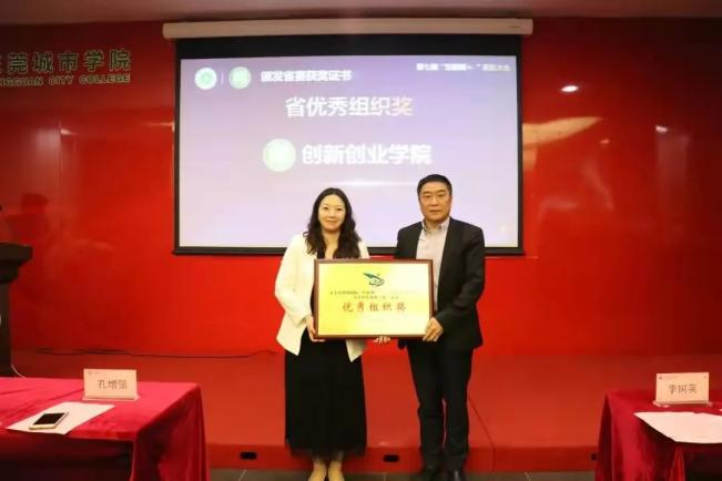 (执行校长李树英为“互联网+”省赛优秀组织奖单位颁奖)
