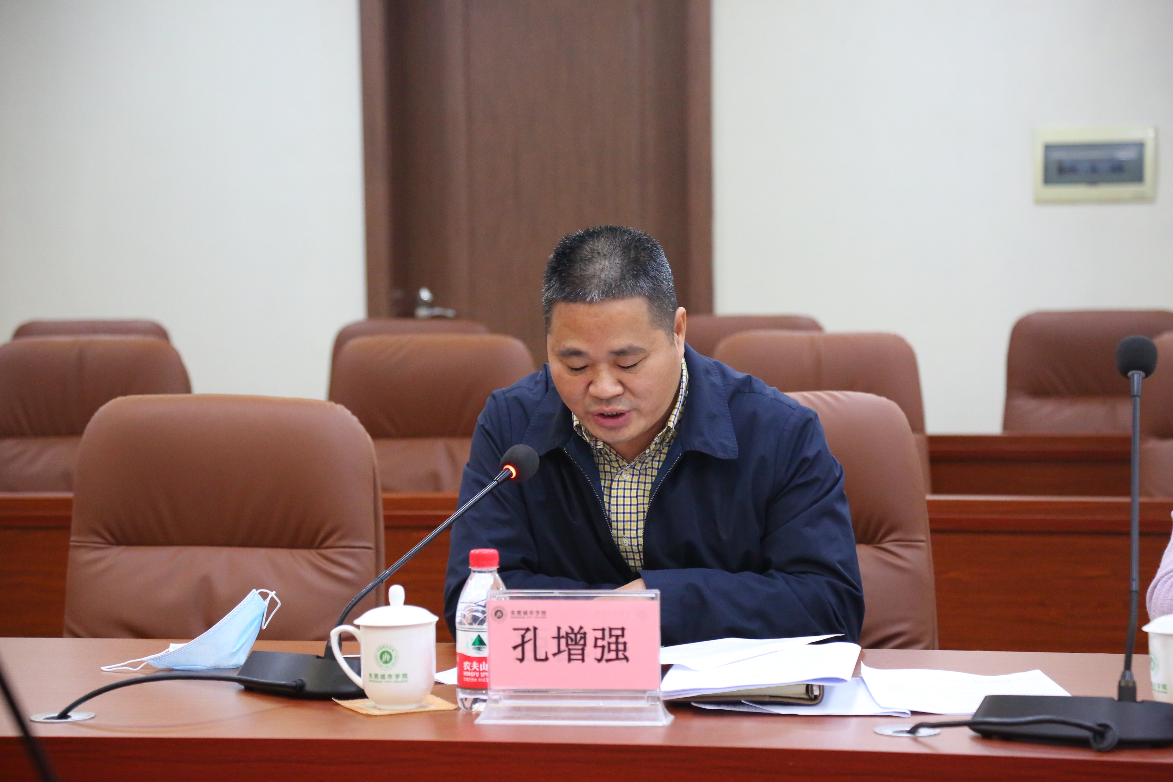 学校法制办主任孔增强根据《教育部关于进一步加强高等学校法治工作的意见》《广东省教育厅关于组织开展高等学校法治工作测评的通知》等文件精神和测评指标,围绕领导和工作推动机制、规章制度建设、内部治理结构、法律风险防控、师生法治教育、师生权益保护、法治工作机构和队伍建设、法治工作成效等方面,向省教育厅法治测评工作小组作详细汇报。