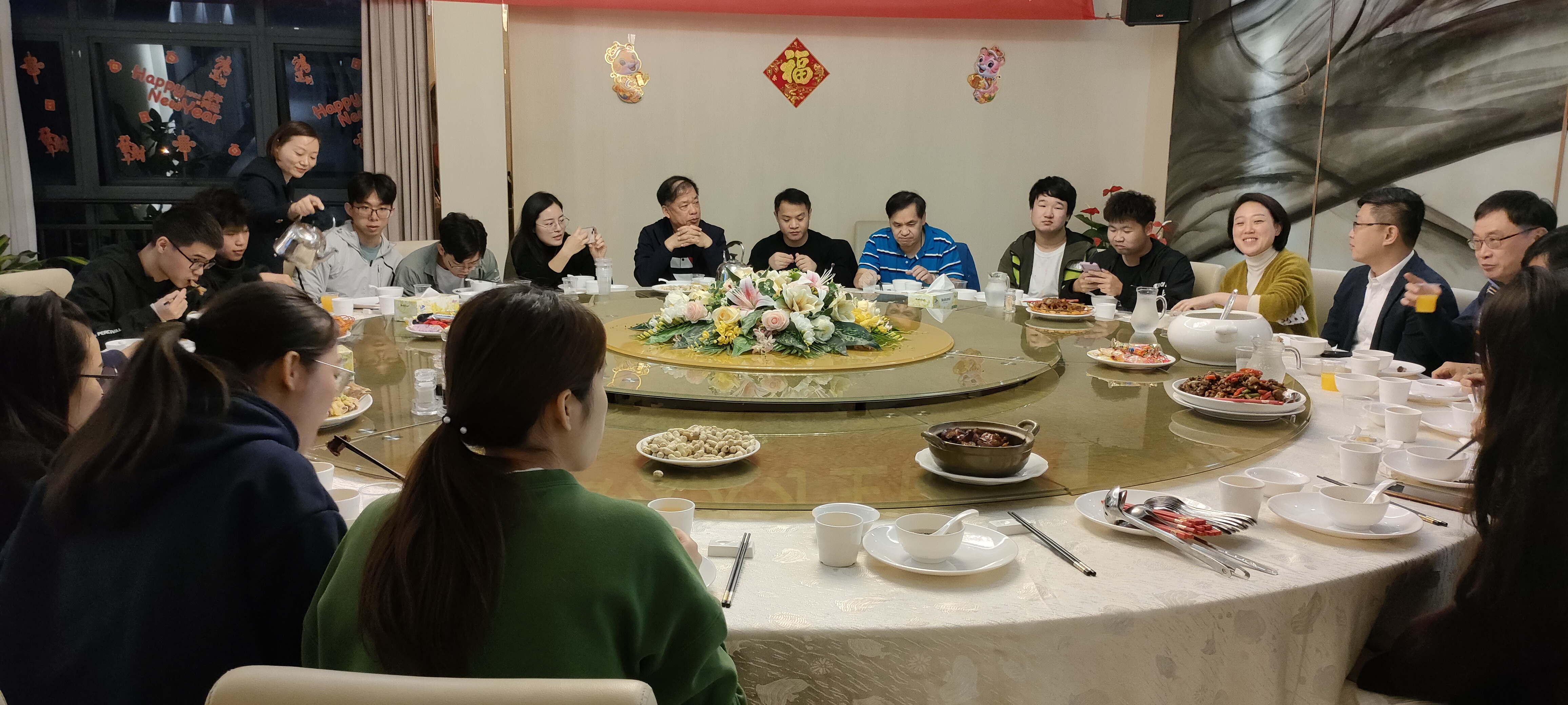 晚宴上,林江龙副校长代表学校党政领导班子向寒假留校师生送上新春祝福,并亲切地询问了留校师生在校情况;李海冬处长通报了近期疫情形势和相关防控政策,提醒留校师生做好安全防护,尽早完成疫苗接种。随后,留校师生还进行自我介绍和相互交流,大家边享受美食,边交流,师生共聚一堂,其乐融融。整场晚宴在欢快、轻松、温馨的气氛中度过。