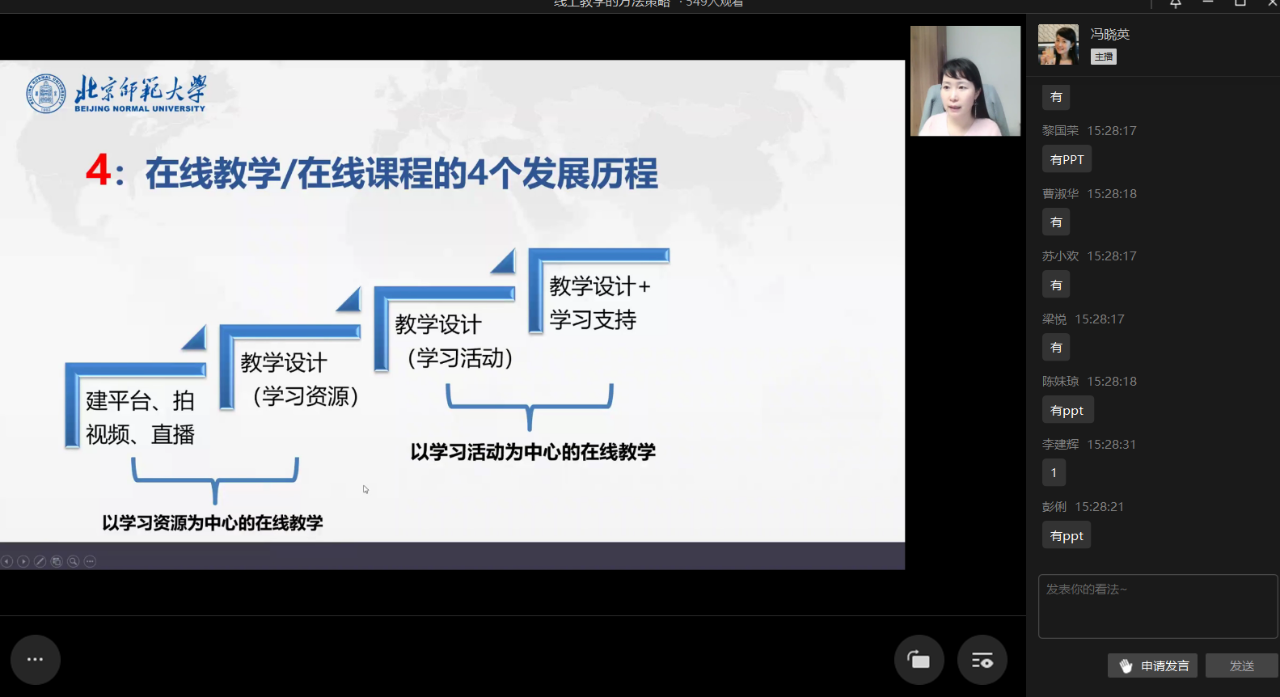 继3月25日“教学知与行”之线上教学能力提升系列工作坊(第一期)圆满举办后,根据本系列工作坊计划并结合第一期培训教师反馈建议,4月1日下午,beat365官网教师发展中心继续开展“在线教学的设计与导学:方法与策略”专题线上培训,beat365官网专任教师以及相关部门人员近700人齐聚直播平台参本次培训。