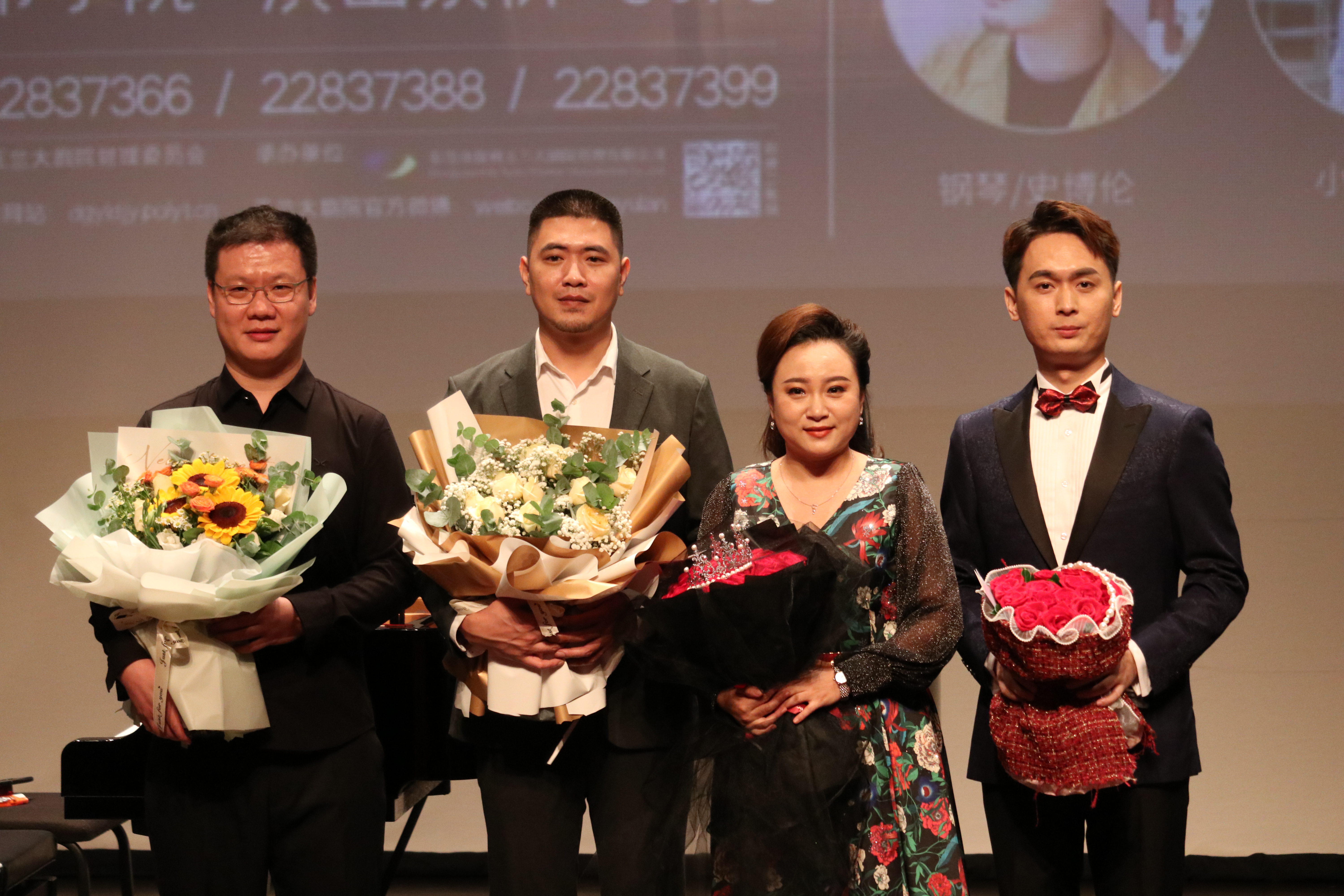beat365官网抒情花腔女高音歌唱家王素娟和青年男中音歌唱家邝富强对古诗词歌曲饱含深情的演绎,与青年钢琴演奏家史博伦、青年小提琴演奏家王松的器乐演奏完美融合,袅袅余音,绕梁不绝,为观众们呈现了这场精彩绝伦的音乐会。