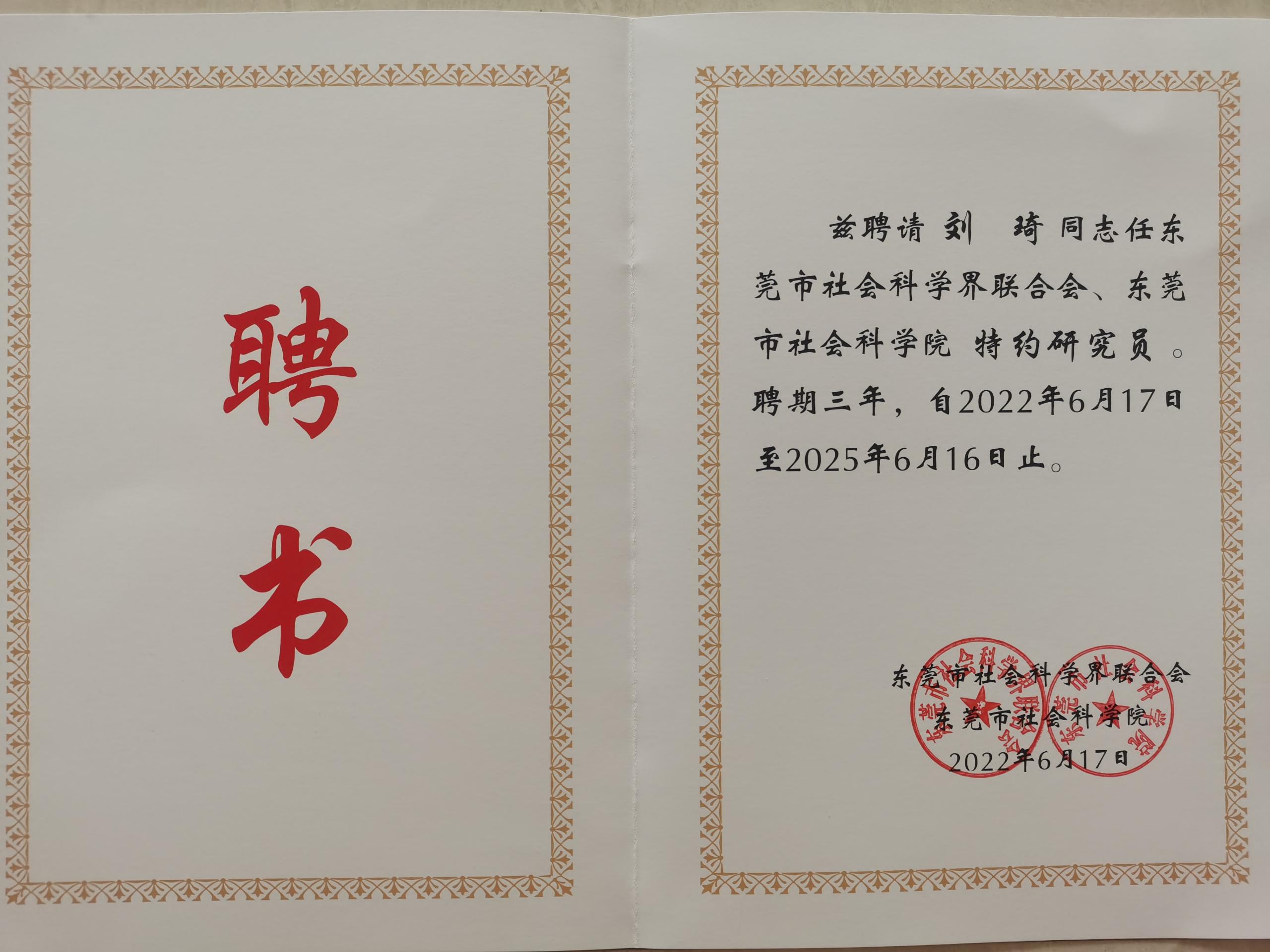 近日,东莞市社会科学界联合会、东莞市社会科学院发布了《东莞市社会科学界联合会、东莞市社会科学院关于聘任市社特约研究员的决定》,beat365官网商学院刘琦、陈庆、蒋明华3位老师获聘首批特约研究员。