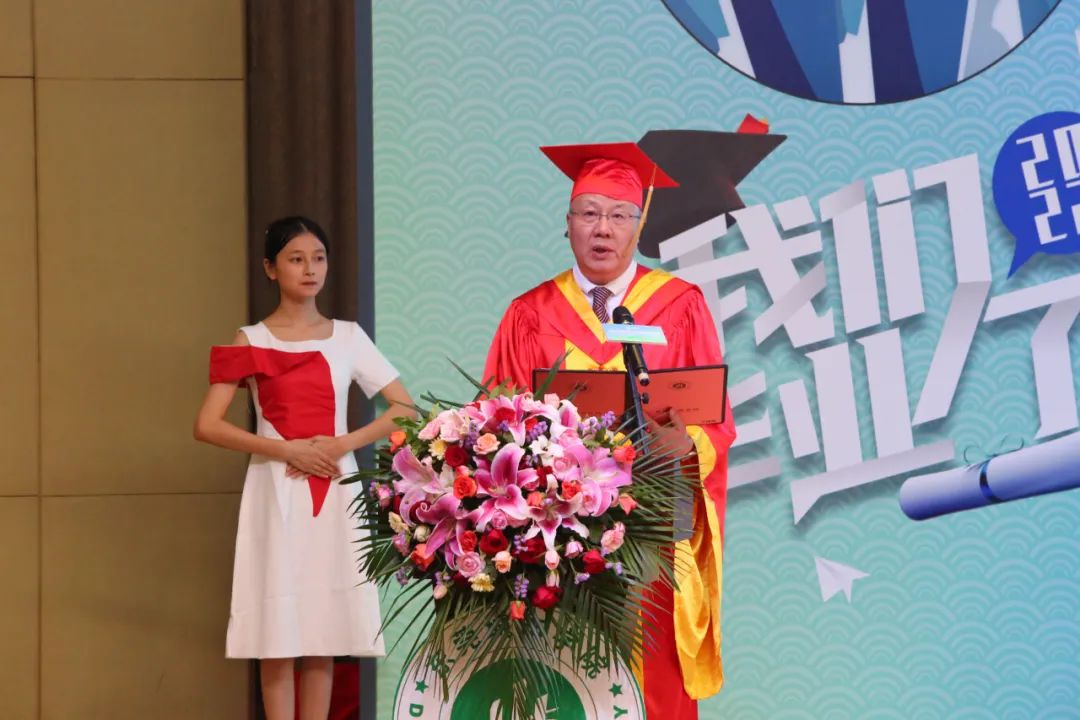 毕业生代表2017级李玥彤、2018级罗鸿伟和校友代表2005级邓锦溏分别作了发言,他们回顾了四年的大学生活,分享了自己人生经历与感悟,勉励大家要不辱使命、不负韶华,追寻梦想成就自我!也祝愿母校越来越好!