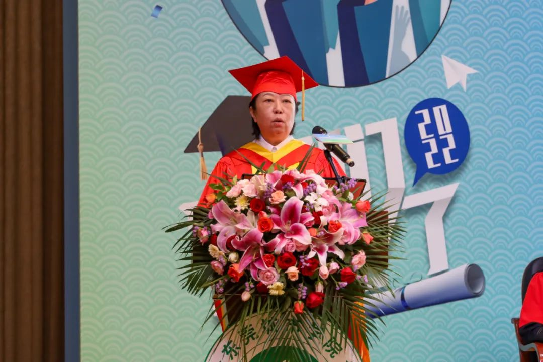 教师代表文学与传媒学院郭华副教授在发言中谈到希望毕业生们能向真而行,做志向远大、信念坚定的追梦者;向新而行,做逢山开路、遇河架桥的奋斗者,把好人生方向,跨千山暮雪、观万里层云,收获诗和远方。