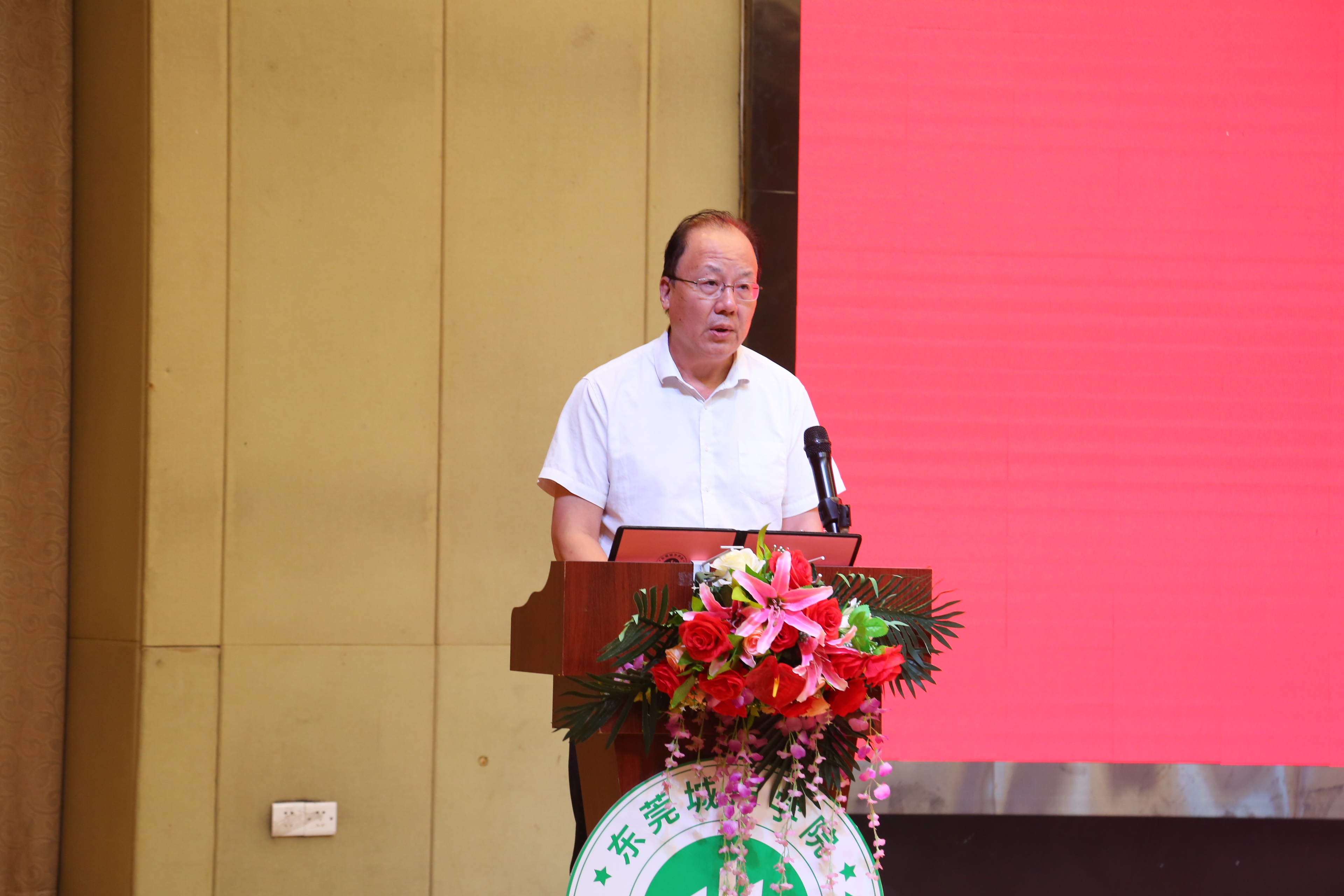 在雄壮激扬的国歌声中,大会拉开帷幕。执行校长李树英作《同心同德,干事创业,奋力推进学校高质量发展》的工作报告。报告全面回顾了学校2021-2022学年度工作情况。过去的一学年,学校完善发展顶层设计与管理领导体制设计,科学制定学校“十四五”发展规划,高标准高质量推动党史学习教育,进一步优化基层党组织设置,党建工作水平再获提升。学校坚持依法治校,全力做好新冠疫情防控工作,有效保障校园稳定。学校奋力推行人事制度改革,激发体制机制活力,不断优化师资队伍结构,提升人才队伍素质。学校招生规模创历史新高,构建了完备的三全育人体系,继续深入人才培养模式改革,进一步加强专业建设和课程建设。科研业绩大幅提升,学校启动硕士研究生联合培养,成功获批广东省博士工作站。学校不断加强国际交流与合作,构建全员参与、全领域覆盖的立体式新媒体平台,品牌建设水平不断提升。学校进一步完善校园硬件建设,新一代校园网建设完成更新,馆藏资源不断丰富,为师生提供更良好的学习生活环境。同时,李树英也指出了学校还存在一些不足之处。