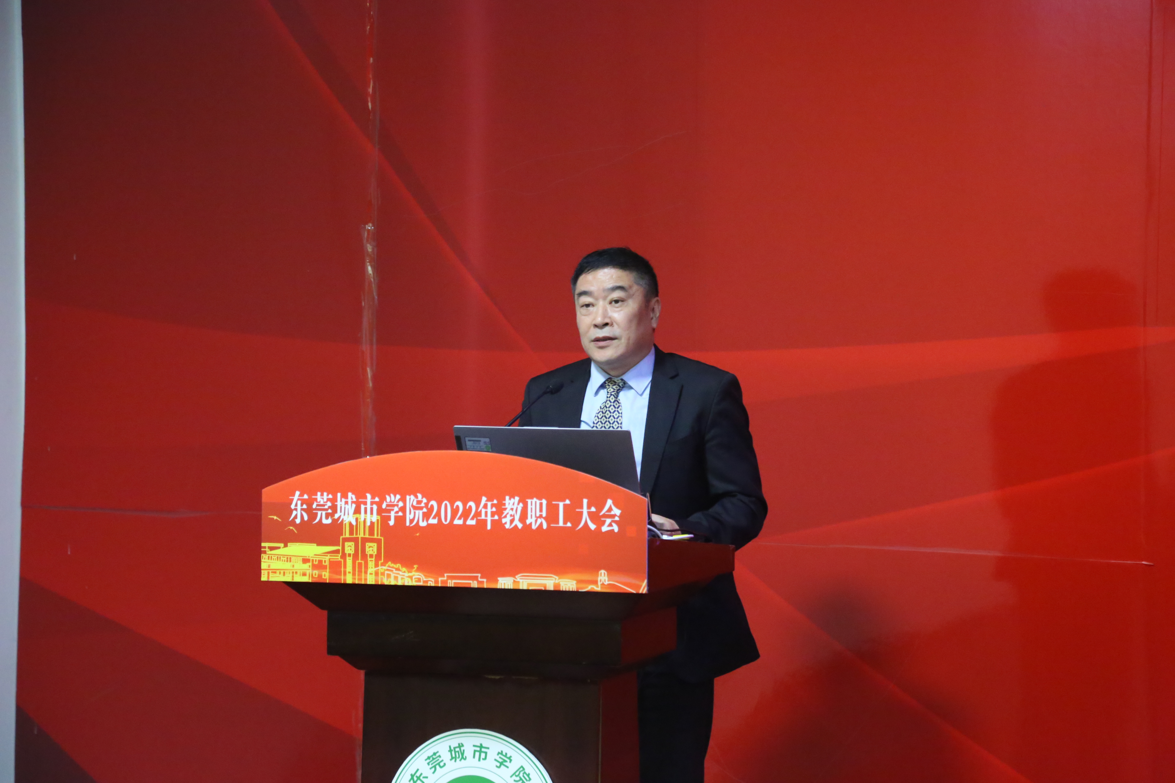如何迎新挑战,抓住学校地处粤港澳大湾区的区位和学校发展中积淀的优势,李树英提出了2022-2023学年的工作思路,对于常规工作要常抓不懈、及早谋划、主动作为,不断创新,对于重点工作要目标具体、责任清晰,多方协调,务实有效。李树英指出:下一学年将重点做好校园扩容,迎新教育部的转设过渡期验收,做好党建示范校建设,特别是在图书馆建设党群服务中心、智慧教室,打造一站式学生综合事务中心,做好招生就业提升质与量的工作,加强学生管理和辅导员“三进”(进社区、进课堂、进宿舍)工作,做好产业学院、健康学院建设,深化专业、课程和教学改革工作,做好提升教学管理、学生管理、后勤服务标准及质量,提升师生满意度等20项重点工作。