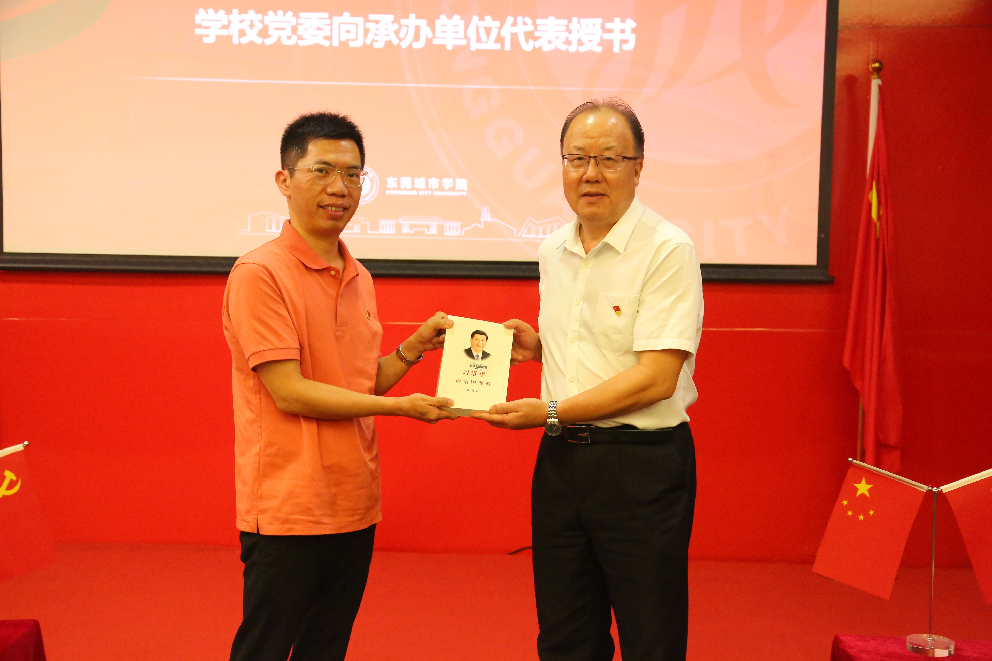 随后,学校党委办公室主任姜虹主持书记读书日第四季启动仪式。仪式上,学校党委书记章德胜向活动承办方数字经济学院党总支书记王炯贤授书。
