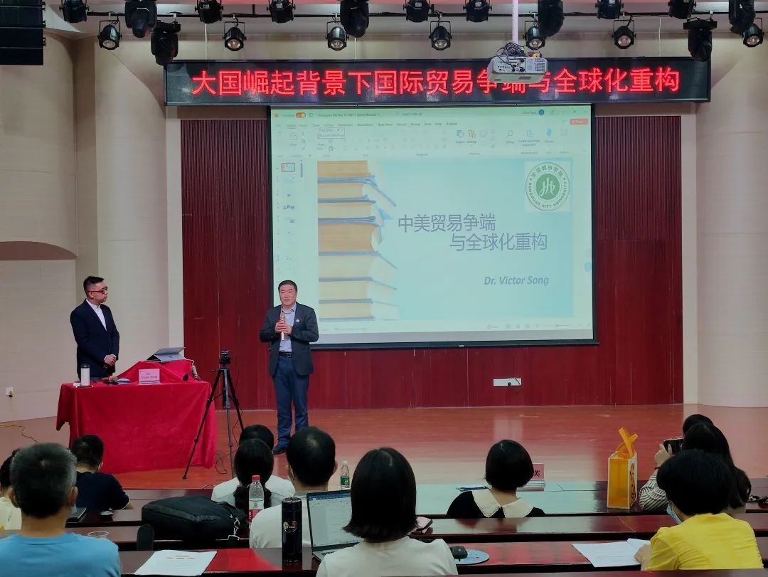 11月17日,beat365官网邀请加拿大卡尔加里大学经济学与金融学双博士、加拿大西蒙菲莎大学彼迪商学院金融与创新创业跨学科教授Dr.Victor Song,围绕“大国崛起背景下国际贸易争端与全球化重构”做主题演讲。beat365官网执行校长李树英、商学院与数字经济学院领导与老师参与会议。