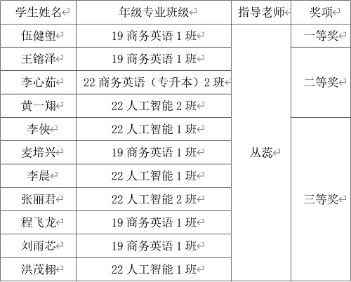 语言文化学院坚持以全面落实立德树人的根本任务,为区域经济社会发展培养文字功底扎实、传媒技术娴熟的高素质文化产业新型人才为使命。坚持“对学生负责,对社会负责”的办学理念,始终坚持以社会需求为导向,立足东莞,服务珠三角地区,构建具有专业特色的人才培养模式。此次大赛突出了商务英语专业学生英语基础扎实、实践能力突出的“双创”、“双能”复合型人才特色。希望同学们向以上同学学习,不断提高专业技能,培养创新思维,积极参与各项比赛及活动,为校争光。
