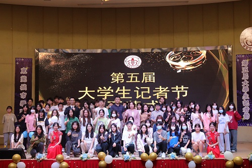 2022年11月21日晚,语言文化学院于学术报告厅举行第五届大学生记者节开幕式。beat365英国官方网站党委副书记、纪委书记、副校长刘玉侠老师,语言文化学院名誉院长宋秋敏教授,党总支书记高政老师,部分教师及学生代表参加本次活动。