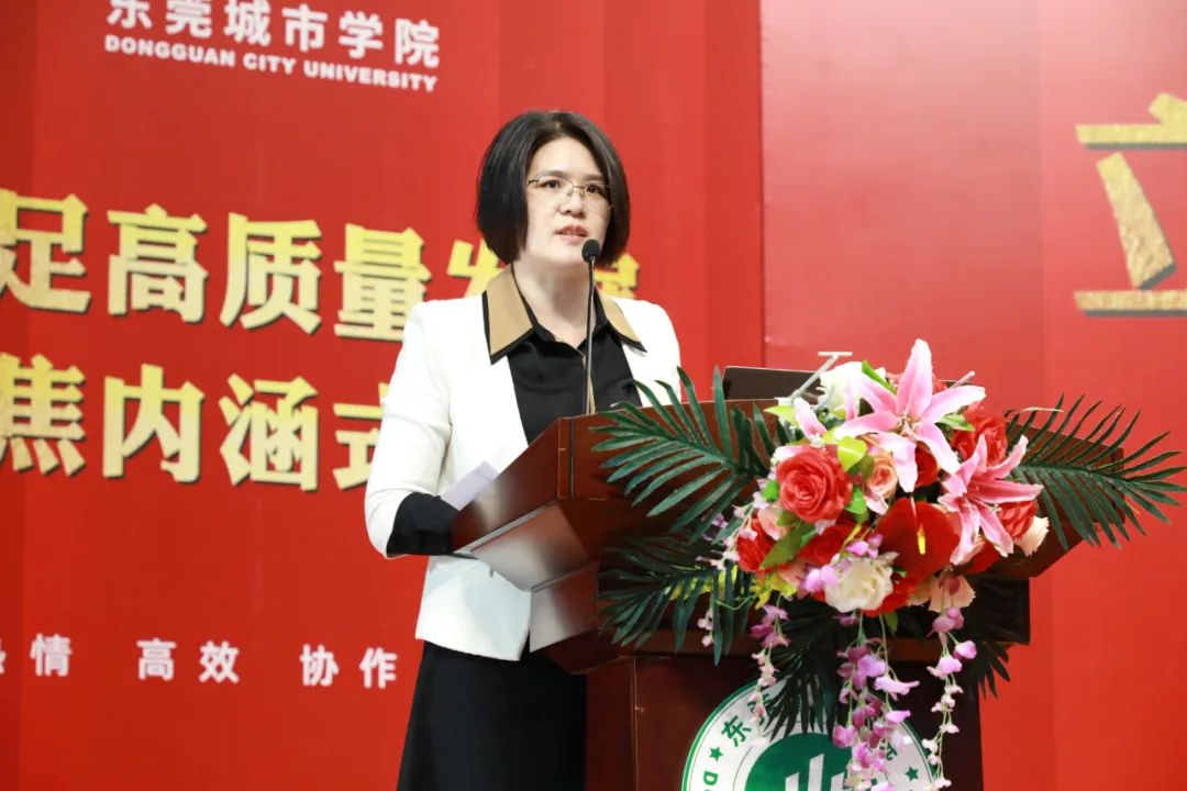 副校长陈葆华作了《扎实推进评估评建工作 推动教育教学高质量发展》的工作报告。她从看清形势,把握规律;明确方向,狠抓落实;有效监控,提升质量三个方面做了报告。她指出本科教学合格评估是国家对本科高校的底线要求也是强制性要求,在重视高等教育的高质量发展背景下,对民办高校的本科教学合格评估要求越来越严格,作为民办高校的我们应该规范和特色两手抓,遵循教育规律和市场规律,重视专业内涵建设,根据民办高校学生特点实现个性化应用型人才培养,依托现代产业学院和乡村振兴学院开展深度产教融合,落实四层递进的实践教学体系,同时强调要逐步构建全方位、全链条的教学质量保障体系为教育教学高质量发展保驾护航。