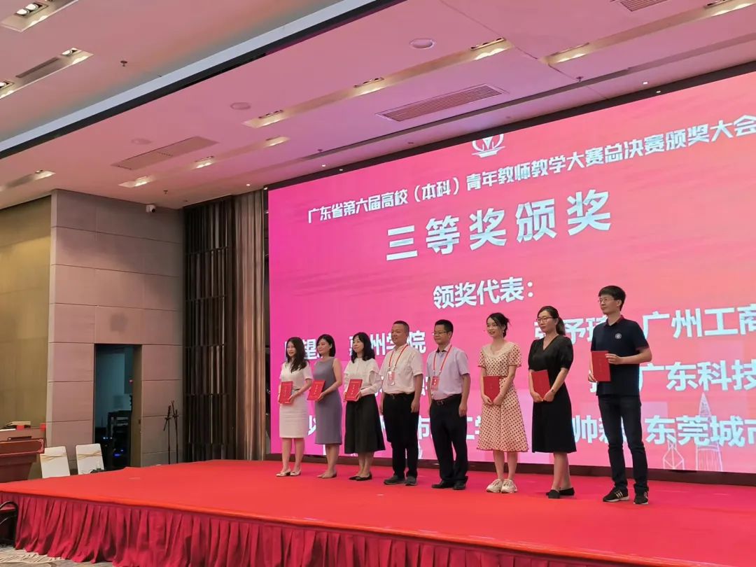 近日,由广东省总工会、广东省教育厅联合举办,广东省教科文卫工会、广东省教育研究院承办的广东省第六届高校青年教师教学大赛圆满落幕。beat365官网7名青年教师在本届比赛中荣获佳绩。法学院陈程老师荣获二等奖,创意设计学院何帅森、商学院罗晓婷、张维,数字经济学院陈慧、语言文化学院舒俊婷、人工智能学院刘天贻6名老师荣获三等奖,本次获奖数量较往届有较大突破!