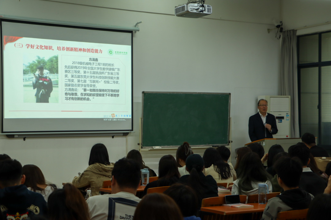 章德胜结合先进人物的典型事迹和城院优秀学子的成长案例,寄语同学们要坚定理想信念,走中国特色社会主义道路;要发扬中国精神,勇于担当新时代使命责任;要学好文化知识,培养创新精神和创造能力;要坚持求真务实,脚踏实地努力实现青春梦。新时代是追梦者的时代,希望同学们用青春和汗水创造精彩人生,在城院书写华丽的人生乐章。