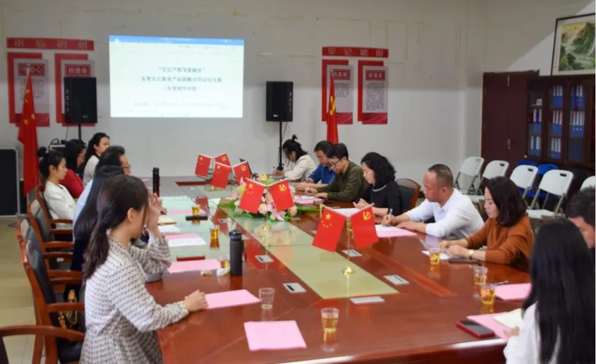 副院长戚峻玮对四月初将要举办的研讨会方案进行详细介绍,研讨会的主旨在于进一步加强高校与市文学艺术界联合会的交流合作,共同推动本土艺术人才的培养,探讨东莞艺术产业的发展,为东莞艺术人才高质量发展做出应有的贡献。东莞市文联专职副主席江祎霞表示此次举办的研讨会意义重大,在学生、学校、社会层面具有重大的影响。她表示加强市文联与高校的紧密联系,建立人才库常态化输入人才,培养文艺类后备队伍完善人才培养机制才能更好的服务社会。东莞市文联领导对四月初即将举办的研讨会表示肯定,以研讨会为契机借助市文联平台完善人才培养机制,为研教研学及专业发展指明方向,为社会输入创新型人才,加强艺术培育工作,促进学生身心健康发展。