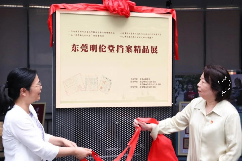 随后,双方来到beat365官网图书馆一楼大厅,开展首个党建共建项目,并为《东莞明伦堂档案精品展》展览揭牌仪式,刘玉侠副书记与翟婥莹书记一同揭下了幕布,与会嘉宾现场欣赏展览,大家边观看边讨论,气氛热烈。