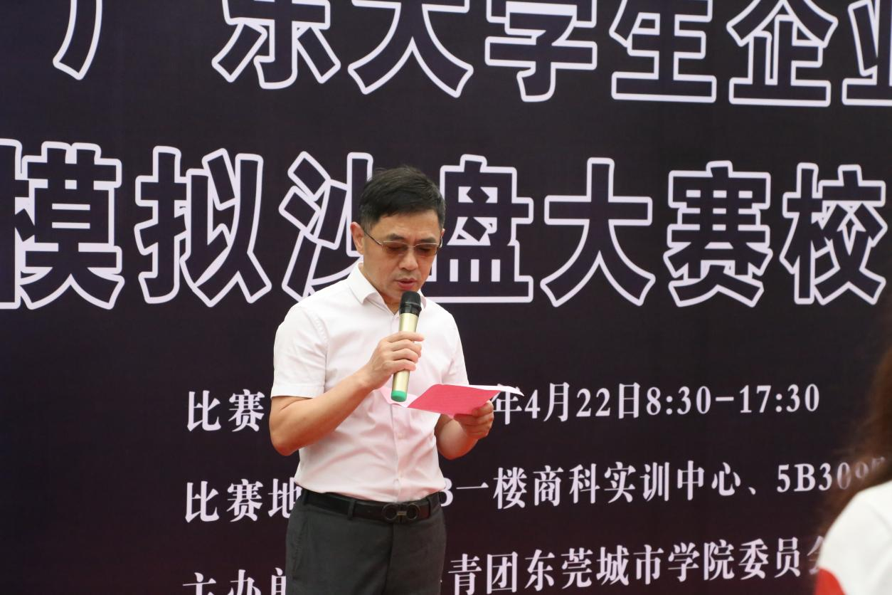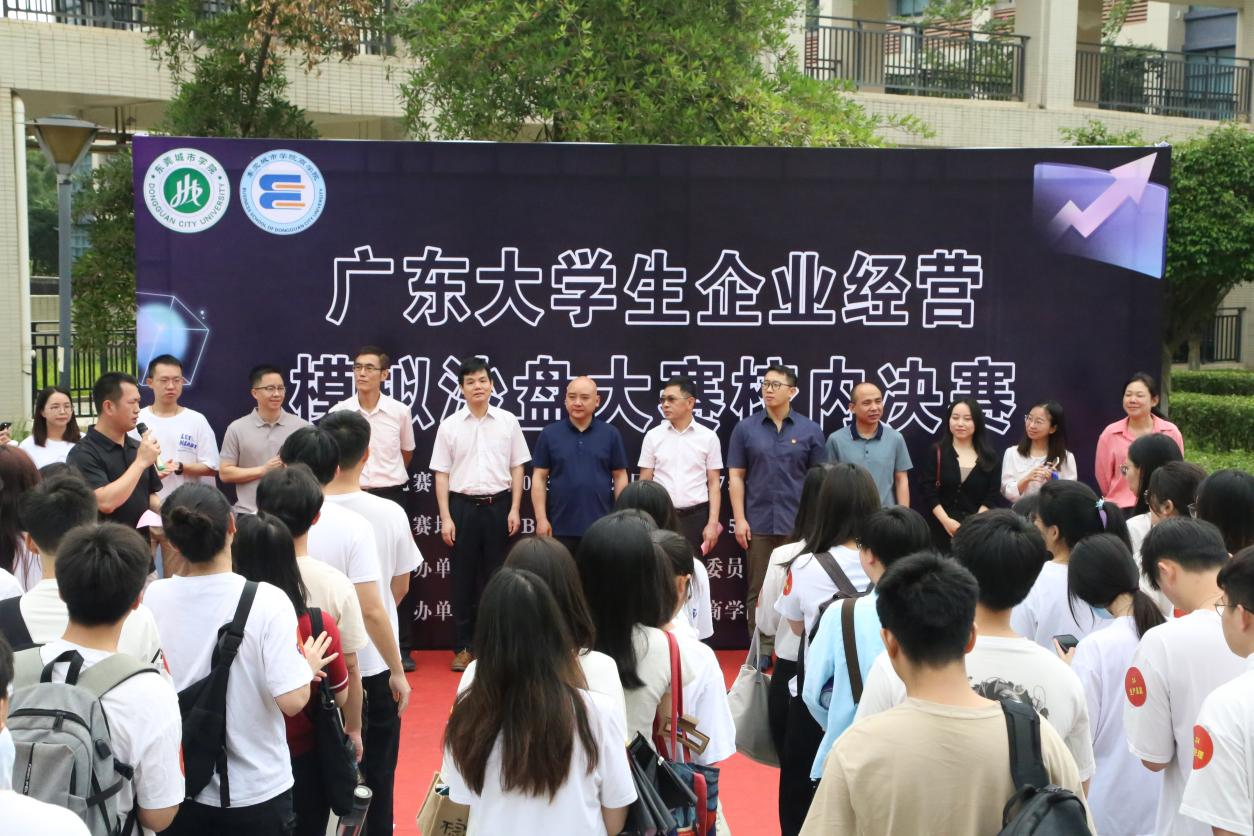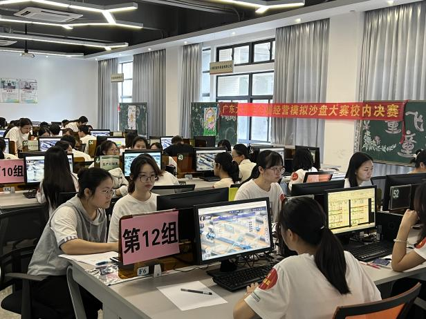 4月22日,beat365英国官方网站商学院在5B商科实训中心举办第十四届广东省大学生企业经营模拟沙盘大赛校内决赛。校长助理、商学院院长罗卫国,商学院副院长肖文锋,校团委副书记陈浩华,党总支副书记惠梦瑶,工商管理系主任罗萧,会计系主任耿玉成以及辅导员团队出席活动,来自商学院、数字经济学院等8个二级学院的190名学生,涵盖了工商管理、市场营销、人力资源、物流管理、金融、计算机、网络与新媒体等专业,共38支队伍参赛。本次活动由商学院会计系副主任黄庆泉主持。
