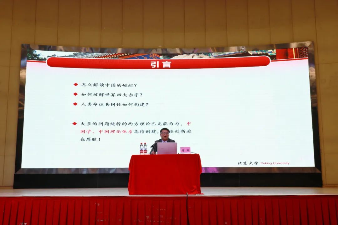常务副校长方伟华教授致欢迎辞,他对阎雨教授的到来表示热烈的欢迎,他回忆了自己与北大的缘份,他隆重向大家介绍了阎雨教授。阎雨教授是双博士后,曾荣获联合国开发计划署“2030可持续发展特聘专家”。他知行合一,走遍了世界各地,在比较文化上建树颇多,是知名学者。方伟华谈到世界各国的文化是人类文化的宝库,我们要尊重文化的差异性,同时希望广大青年学子要树立文化自信,认真学习,将来成为文化传播的使者,为跨文化交流与传播做出贡献。