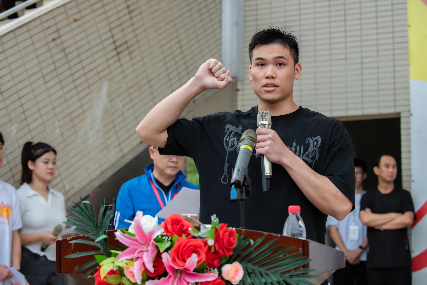 运动员代表邓振涛进行了宣誓。他表示全体运动员要严格遵守比赛规则,坚决服从裁判,友谊第一、比赛第二,赛出水平,赛出风格,发挥出最佳成绩。裁判员代表江绮晴进行宣誓。她表示全体裁判员要恪守体育职业道德,认真履行裁判员职责,遵守竞赛规则,严格执裁,认真、公正、准确判决,圆满完成各项裁判工作。