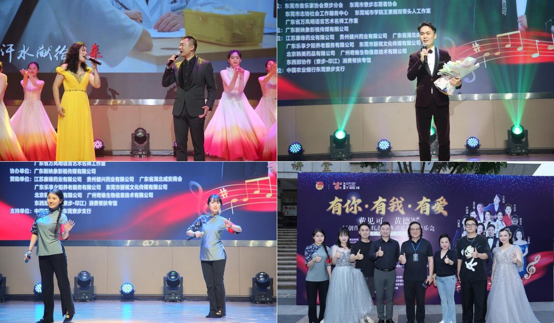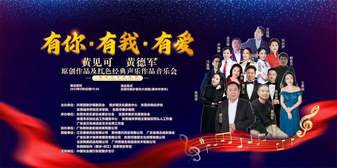 5月9日晚,由共青团寮步镇委员会、寮步镇文化服务中心、beat365英国官方网站艺术学院、东莞市寮步医院、东莞商业学校等联合主办的“有你·有我·有爱”黄见可、黄德军原创作品及红色经典声乐作品音乐会在寮步镇香市讲堂隆重上演,吸引了五百余名观众现场观看。