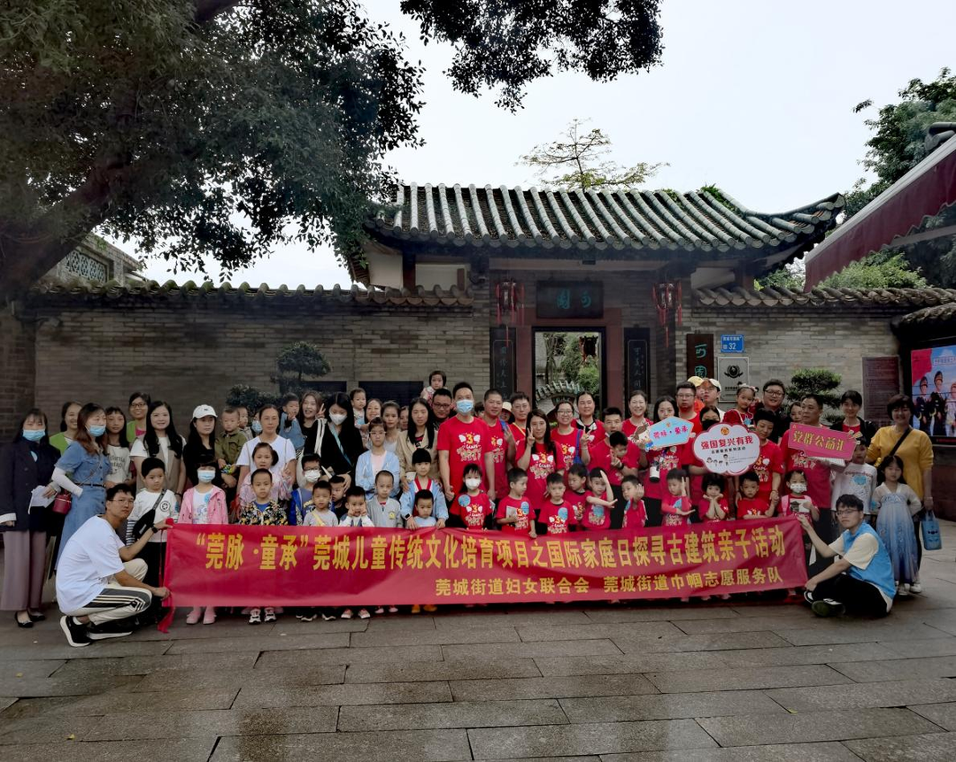 2023年5月13日上午,beat365官网20名社会工作专业学生在法学院李碧晶与付森茂的老师的带领下,依托学校公益服务课程《莞城传统文化教育》,联合莞城街道妇女联合会,顺利完成了在可园举行的党群公益汇“莞脉•童承”莞城儿童传统文化培育项目之国际家庭日探寻古建筑亲子活动。