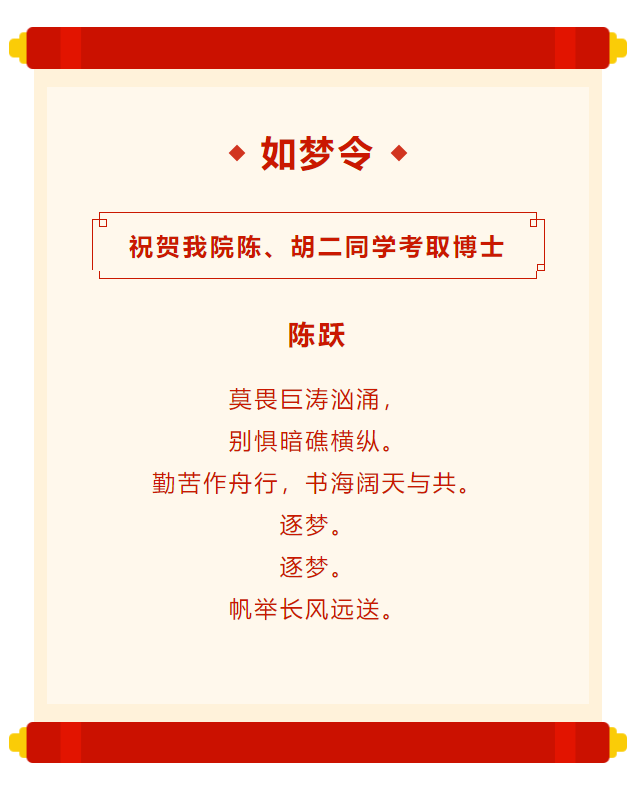 座谈会最后,中文系专任教师陈跃把自己的著作赠予给两位校友,并为他们题了一首词,表达了老师对学生的美好祝愿。他鼓励学生们要勇于挑战,追求梦想,不要忘记自己的初心,时刻磨砺前行。这些话语不仅仅是为了让学生们能够牢记学校的精神,更是希望学生们能够始终抱着一颗踏实的心,勇敢逐梦,为未来奋斗不息。
