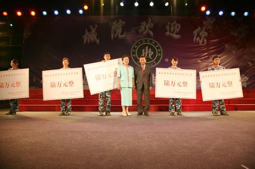 在晚会开始之前,东莞理工学院城市学院党委副书记朱冰主持了“金城营造革命老区大学生励志奖学金”颁赠仪式。香港金城营造集团有限公司董事长王锦辉先生及其夫人为我院5名08级四川通川籍新生颁发了6万元奖学金。城市学院副院长程发良教授为我院08年优秀毕业生香港大学硕士研究生陆正祥同学颁发奖金1万元。