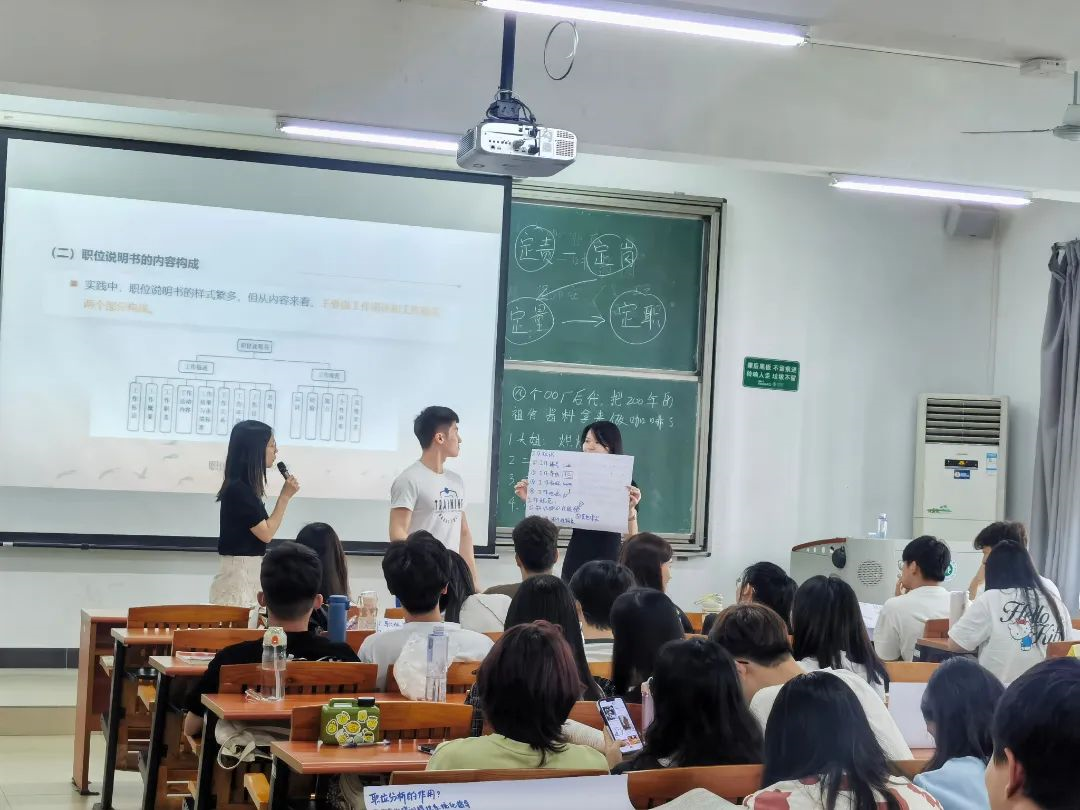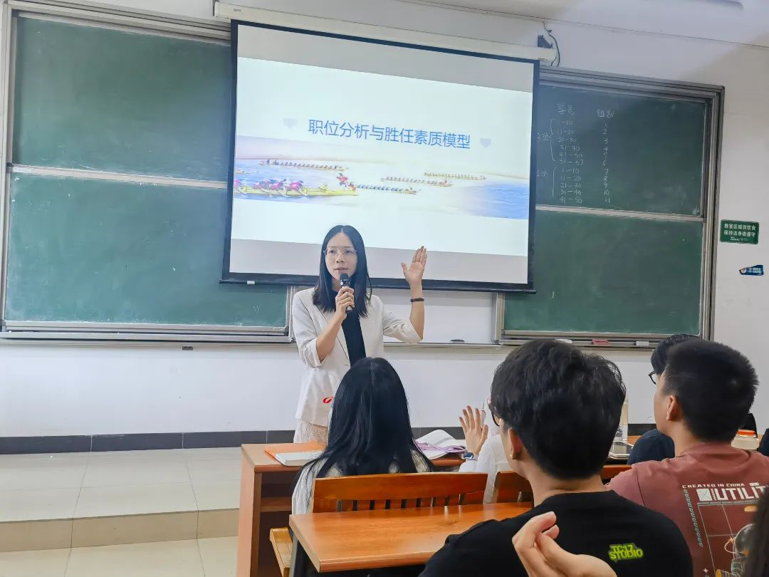 近日,beat365官网商学院于7A408和7A417开展《人力资源管理概论》课程的协同教学。本次特邀东莞市新奥燃气集团人力资源部经理吴雪冰作为主讲人。2022级市场营销(专升本)1-4班共210名学生参与了本次协同教学活动。吴雪冰经理结合工作实践,以职位分析与胜任素质模型为主题进行授课。