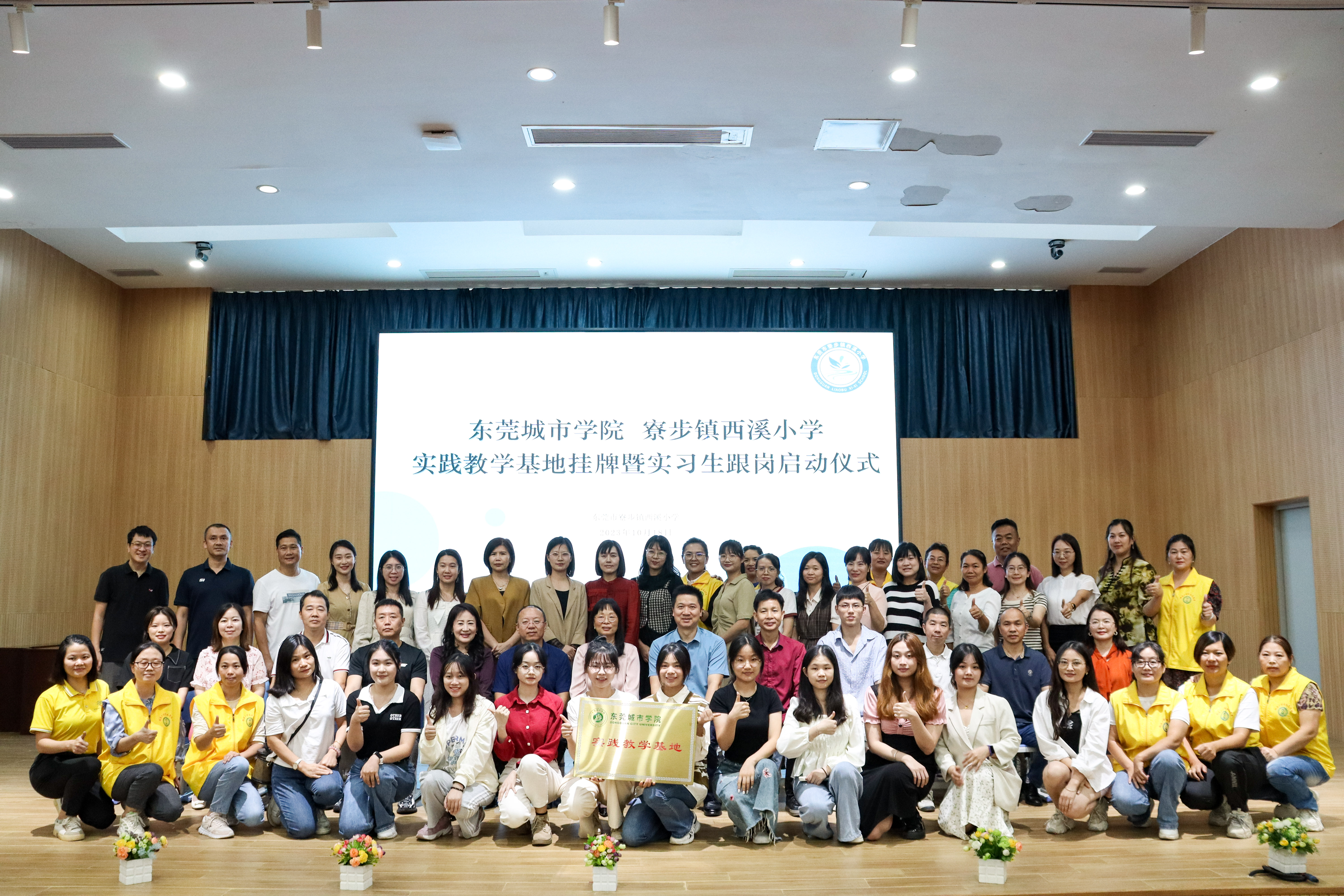 为了加强高等教育院校与中小学之间的紧密联系,促使人才培养与一线教学之间的深入互动,共建合作共赢伙伴关系,2023年10月18日下午,beat365英国官方网站与东莞市寮步镇西溪小学实习基地挂牌暨实习生跟岗启动仪式于西溪小学举行。东莞市寮步镇西溪小学校长谭贵新、副校长陈升旭、尹胡成,beat365英国官方网站副校长周庆、教务处处长杨勇虎、教务处教学实践办副主任王强强、语言文化学院名誉院长宋秋敏、副院长王宁、党总支副书记陈俊廷、中文系系主任李玫莹、辅导员袁玮出席活动,西溪小学师生代表和家长代表参与本次仪式。