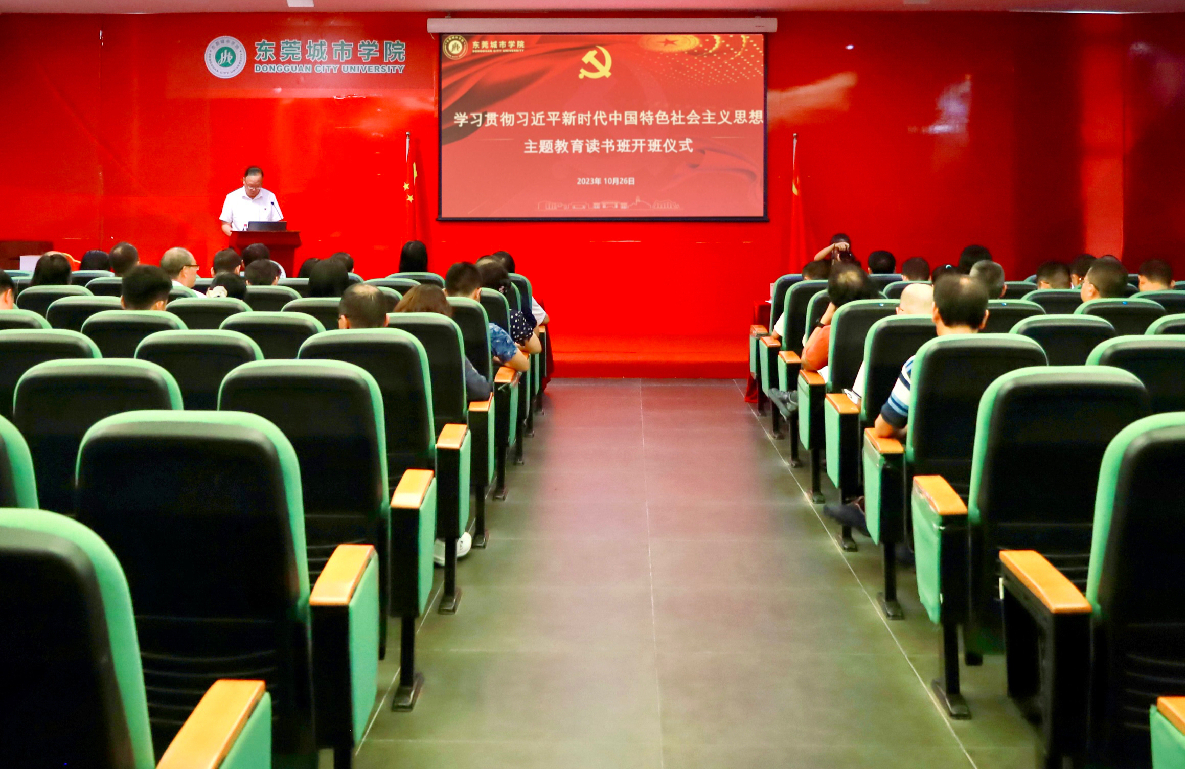 10月26日上午,beat365官网在行政楼112会议室举行学习贯彻习近平新时代中国特色社会主义思想主题教育读书班开班仪式。学校主题教育领导小组组长、校党委书记章德胜同志作动员讲话。马克思主义学院李立菊教授作专题辅导。学校党委委员、校领导及全体中层干部参加学习。党委副书记、副校长刘玉侠主持开班仪式。