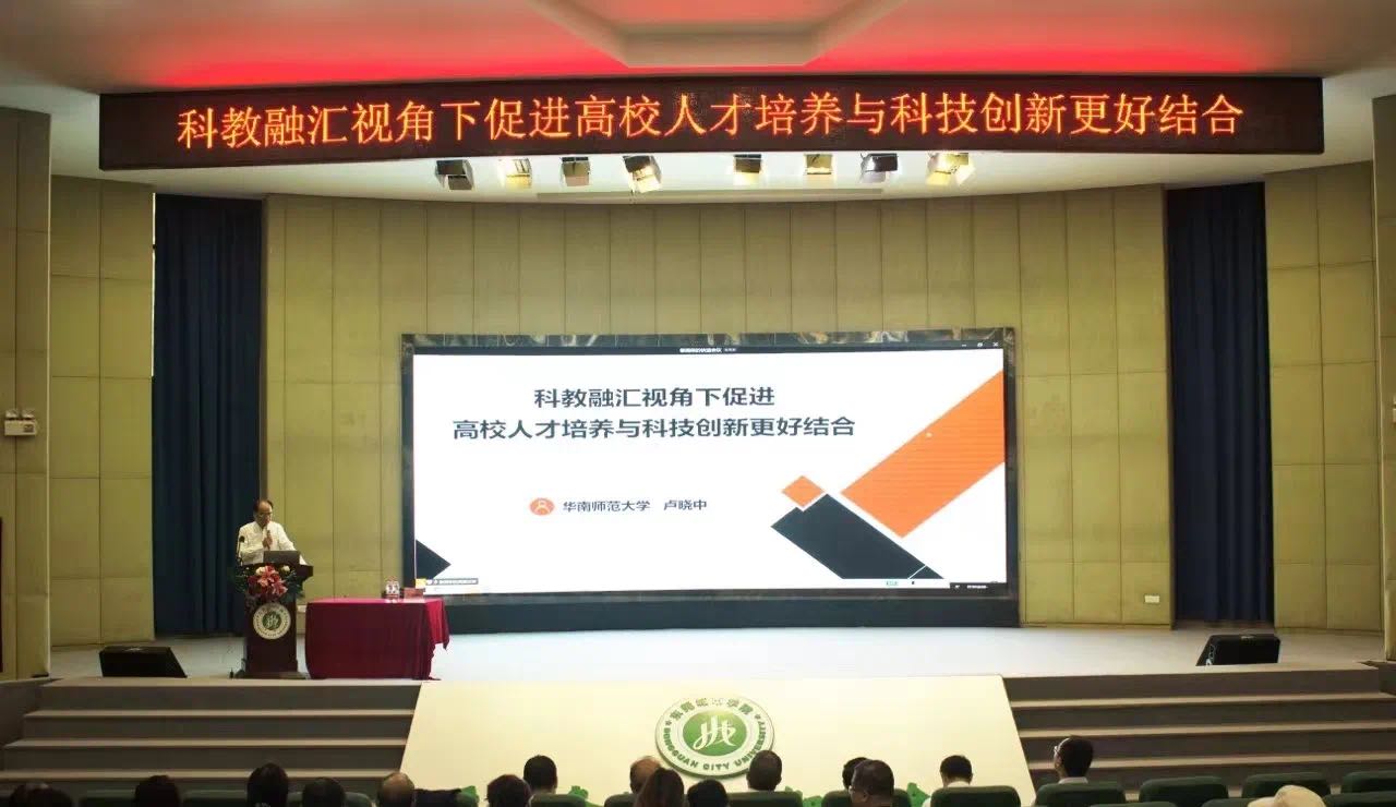 为深刻领会“科教融汇”精神内涵,进一步推动学校人才培养与科技创新更好结合,充分发挥高水平、高层次人才的指导性作用,11月3日上午,beat365官网顾问,华南师范大学博士生导师卢晓中教授应邀来校为全校教职员工作题为“科教融汇视角下促进高校人才培养与科技创新更好结合”的学术报告。本次讲座线上线下同步进行,学校全体校领导、中层干部,二级学院系副主任及以上、副高及以上、博士人员线下参加,其他教职员工线上收听。科技产业处处长赖忠孝主持报告会。