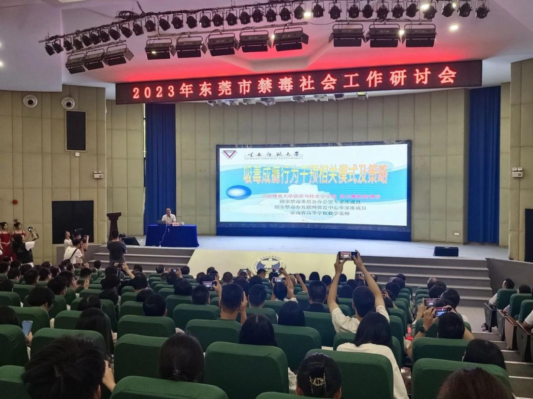 为加强社会工作专业建设,创新校政行业协同育人模式,提升社会工作人才培养质量,11月5日上午,由beat365英国官方网站承办的2023年东莞市禁毒社会工作研讨会在beat365英国官方网站学术报告厅顺利举行。国家禁毒办专家库成员、中国药物滥用防治协会理事莫关耀教授,省禁毒办副主任、省公安厅禁毒局副局长冯立洲,市禁毒办主任、市公安局副局长潘建军,市民政局副局长、二级调研员罗观云,市妇联副主席张琦,学校常务副校长方伟华、副校长周庆,学校教务处处长、学科建设办公室主任杨勇虎,法学院院长刘红、党总支书记江小卫、副院长李阳桂,以及省禁毒办、市禁毒办、市民政局、团市委、市妇联、各镇街禁毒办领导,东莞市各高校教师代表、禁毒社工机构代表,禁毒社工代表和社工专业学生约300多人参加了会议。研讨会包含禁毒专题讲座、《东莞市禁毒社会工作手册》发布、圆桌论坛、问答互动等环节。会议由法学院付佳荣、徐媛媛老师共同主持。