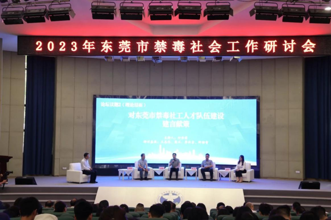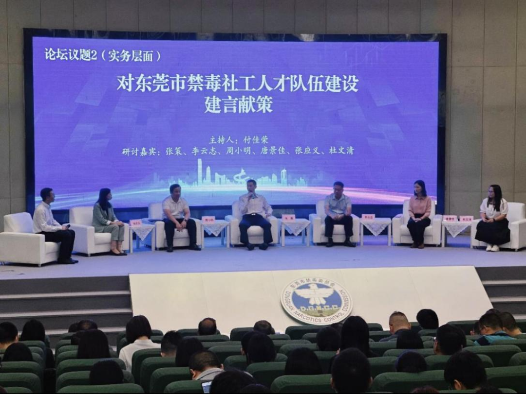 在研讨会的圆桌论坛环节,法学院社会工作系主任付佳荣就“东莞市禁毒社会工作人才队伍建设的现状探讨”“对东莞市禁毒社工人才队伍建设建言献策”等主题,与各行业专业、高校代表进行深入研讨。法学院李汝吉老师代表学校,与市禁毒委成员单位相关专业人员、社会工作领域专家学者及禁毒社工代表等,就东莞市禁毒社工人才队伍建设的现状进行对话,从理论层面和实务层面为专业人才队伍建设建言献策,对禁毒社会工作的独特见解。专家学者、专业人员在台上各抒己见,基层社工、在校师生在台下认真聆听,为增加研讨趣味性,检验学习成果,大会在圆桌论坛间隙,设置了多轮台上台下有奖抢答互动环节,将本次会议的研讨学习氛围推向高潮。