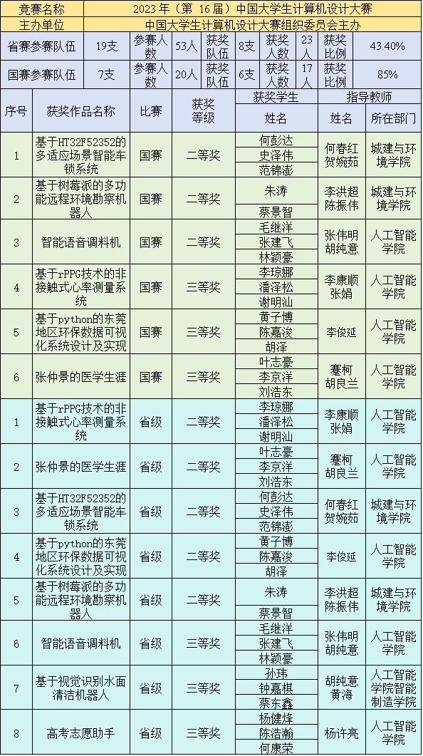 由中国大学生计算机设计大赛组织委员会主办的2023年(第16届)中国大学生计算机设计大赛国赛决赛已落下帷幕。beat365官网学子荣获省赛获奖8项,其中二等奖5项,三等奖3项,获奖率43.4%;推荐至国赛的7件作品,与全国各省市895座本科院校的5758件作品同台竞技,获国家级奖项6项,其中二等奖、三等奖各3项,获奖率达85%。