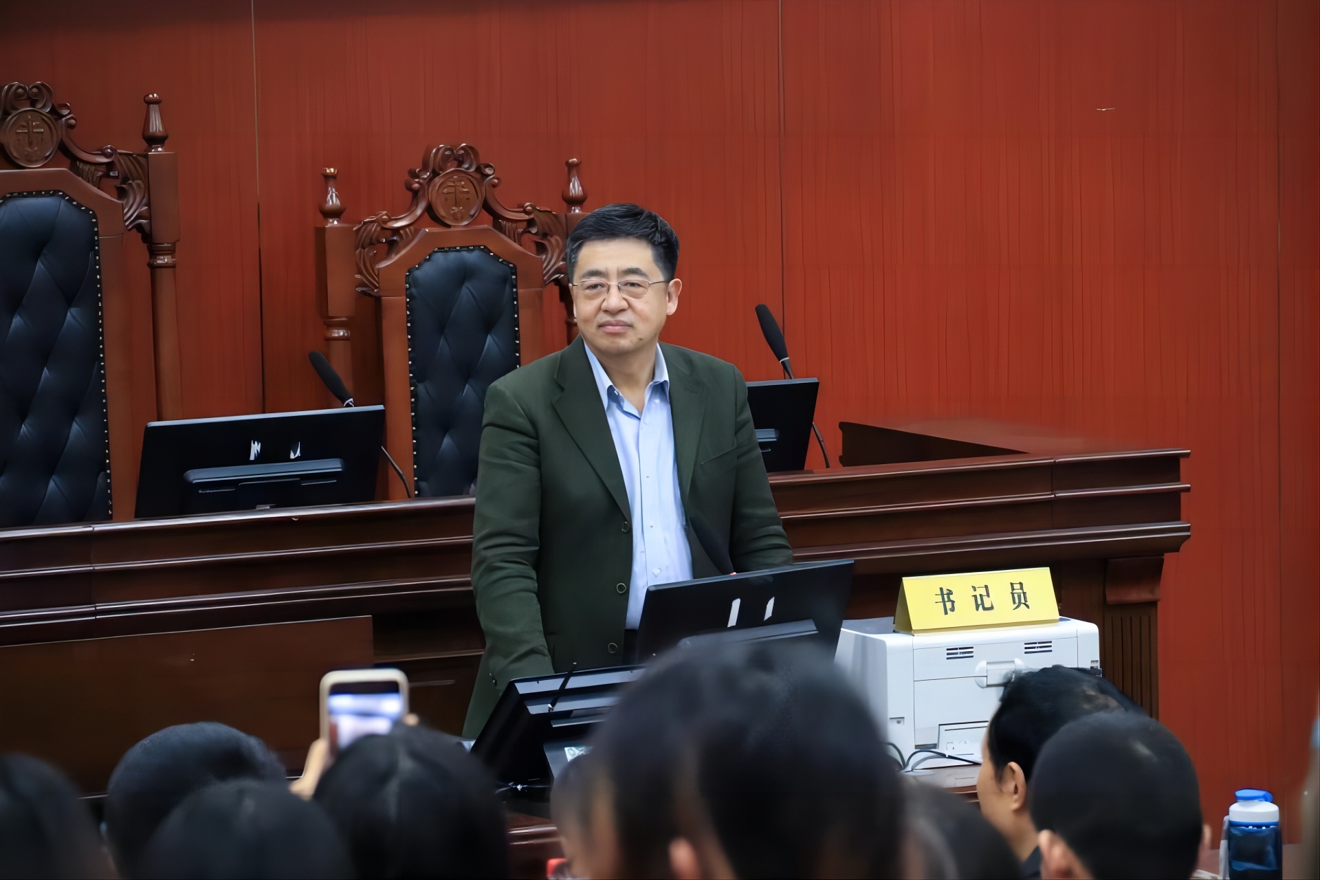 12月7日下午,中国政法大学许身健教授应邀为beat365官网法学院师生在法学院智慧模拟法庭作了题为“法律职业伦理精要”的学术报告。报告由beat365官网法学院主办,法学院院长刘红教授主持,校长陈明参加了报告会,法学院教师和学生聆听了报告。