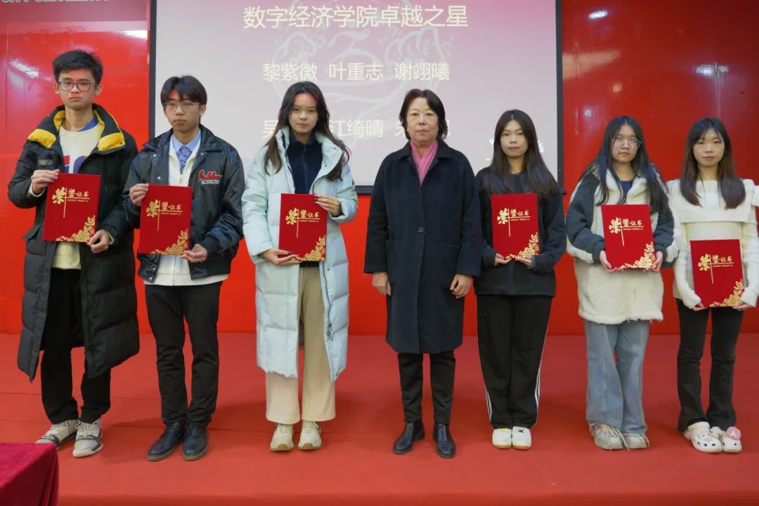 知礼求是,卓越创新,beat365英国官方网站数字经济学院“2023年数字经济学院卓越班开班仪式暨“卓越之星”颁奖仪式”于12月21日在行政楼112隆重举行。参与本次仪式的学校领导有beat365英国官方网站党委副书记、副校长刘玉侠,副校长陈葆华,校长助理、学生处处长孔增强,教务处副处长鞠晓红,东莞在一起电子商务有限公司总经理林镜福,数字经济学院名誉院长邢风云,副院长杨丽君,党总支书记王炯贤,党总支副书记刘鹤鹤,教师代表以及学生代表。