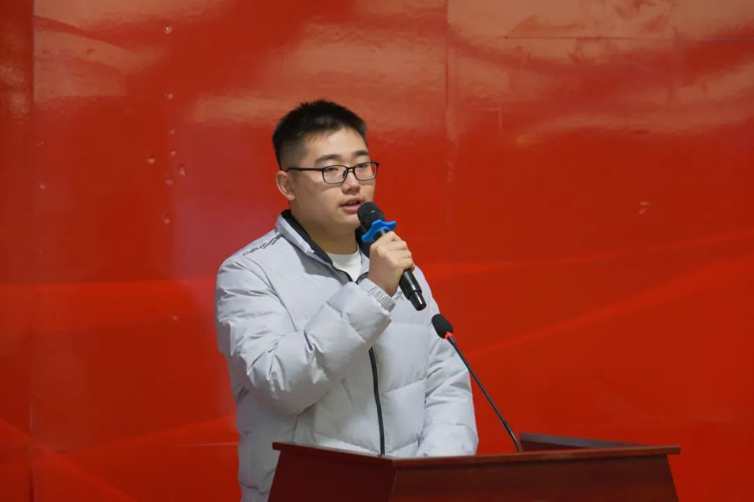 2022级卓越班谢翊曦作为卓越班老生代表进行发言。他从卓越班的学习生活、大学学习方法、个人比赛经历分享和对老师和同学们感谢四个方面,分享了自己在卓越班的成长经历和感悟,鼓励大家以认真负责的态度面对困难,攻克问题,为学院斩获荣誉,坚定内心,勇往直前。