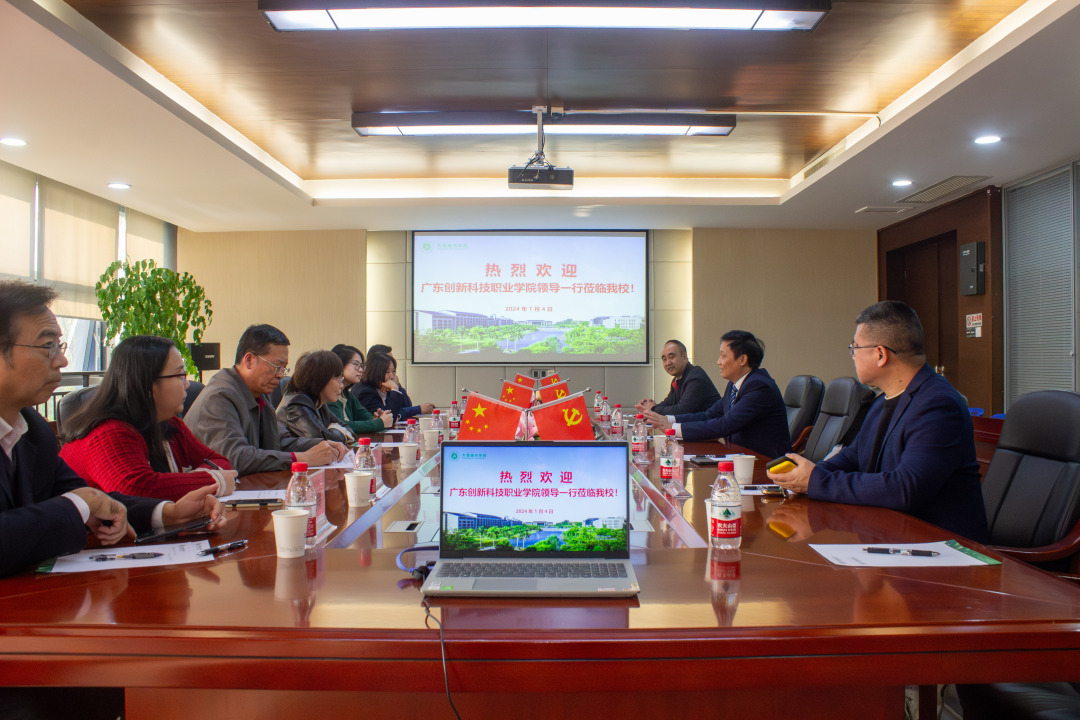 新年伊始,广东创新科技职业学院副校长朱敏、校长助理方颖珊、图书馆馆长张世英、以及后勤管理中心主任刘寿彭等领导一行来访beat365官网,beat365英国官方网站常务副校长方伟华、副校长康贤刚亲自接待了来访的嘉宾。此次访问主要目的是考察交流beat365官网后勤管理和信息化建设方面的成功经验。