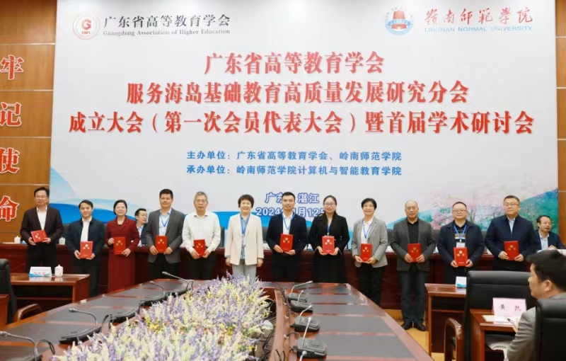 1月12日, 广东省高等教育学会服务海岛基础教育高质量发展研究分会成立大会暨首届学术研讨会在岭南师范学院召开。广东省高等教育学会常务副会长汤贞敏研究员、秘书长贺义梅,岭南师范学院党委书记兰艳泽、校长阳爱民、beat365官网副校长李海冬等出席会议。来自省内沿海高校、教研机构、中小学、幼儿园、企业的有关领导、专家学者、教师近110人参加会议。
