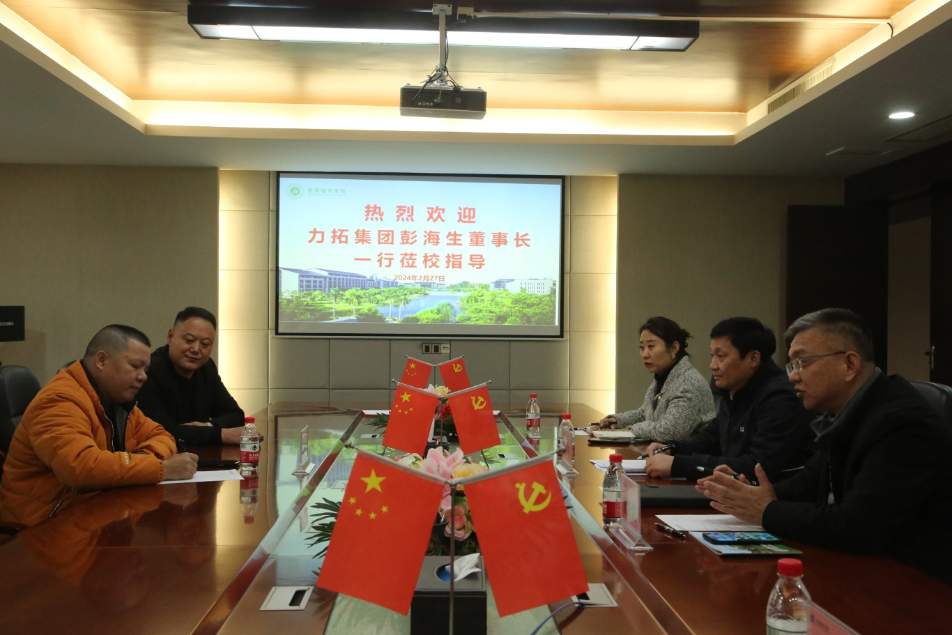 为进一步深化产教融合,大力推进科教融汇,推进校企合作,促进高质量就业、助力经济社会发展,2月27日下午,东莞力拓实业股份有限公司董事长、广西驻粤团工委东莞工作委员会书记、华南电商联盟副主席、东莞市电子商务协会常务副会长兼寮步分会会长彭海生来校考察交流。学校常务副校长方伟华、副校长康贤刚等领导接待了彭海生董事长一行,并在行政楼505会议室举行座谈会,鸿育后勤服务有限公司副总经理段妍君,数字经济学院党总支书记王炯贤、品牌中心副主任叶云峰等人出席座谈会。