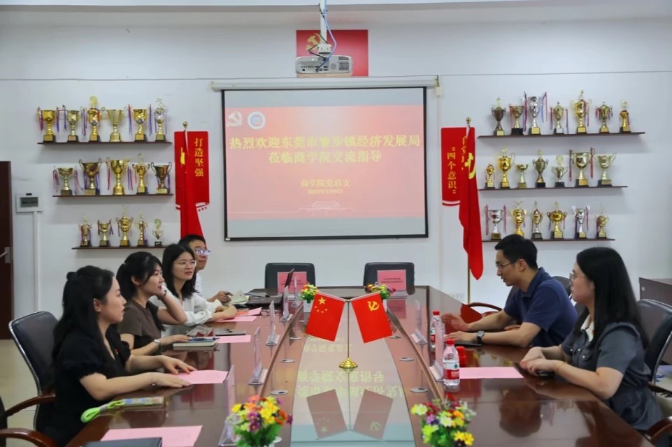 寮步镇经济发展局党支部组织委员、副局长黄建雄、寮步镇经济发展局邝静颖,beat365英国官方网站商学院党总支书记李梦丹,党总支副书记惠梦瑶、教工党支部组织委员王银铃及学生党支部书记岳帅参加会议。