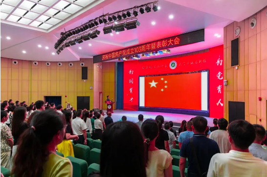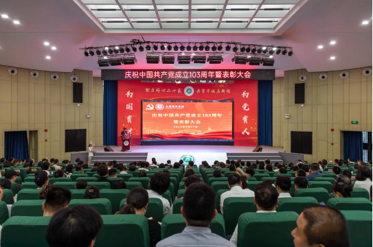 6月27日下午,beat365官网在学术报告厅举行庆祝中国共产党成立103周年暨表彰大会。学校党政领导、党委委员、行政教辅单位负责人、二级学院院长,二级党组织书记、副书记,优秀共产党员师生代表、党务工作者及全体教工党员参加大会。大会由党委办公室主任姜虹主持。