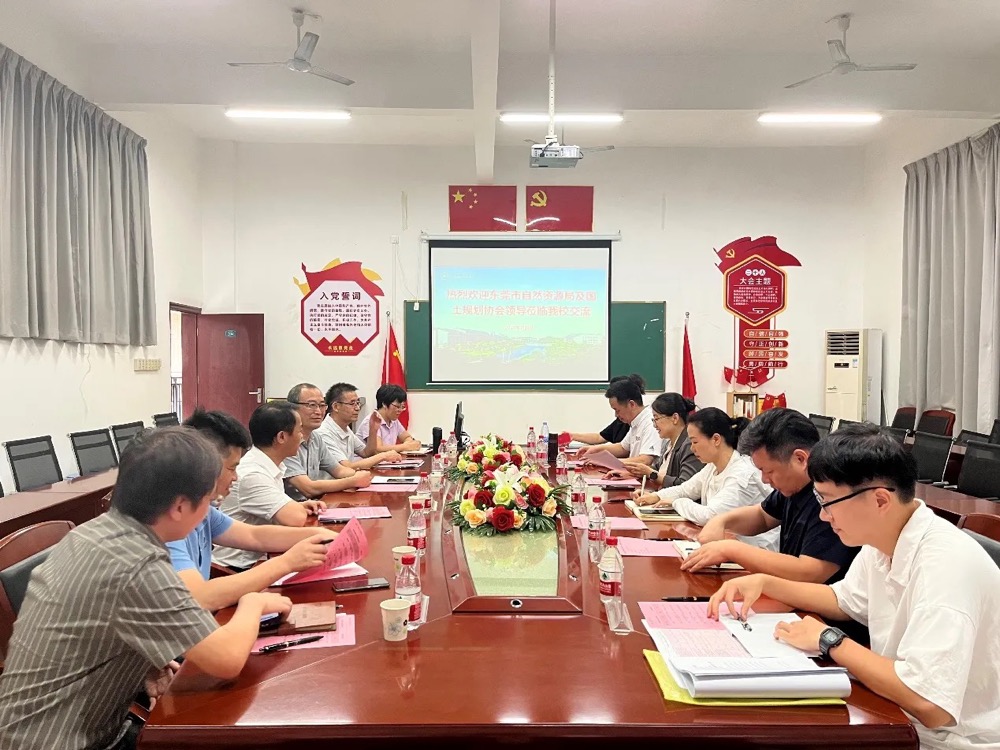 2024年7月4日,东莞市自然资源局四级调研员梁颖贤、城市设计与工程监管科科长杨美玲,市土地储备中心高级工程师杨景盛,东莞市国土空间规划协会副秘书长王巍、办公室主任徐蕾等人来beat365官网围绕多尺度多类型空间规划与建设的研究成果、环境规划和资源保护及土木工程设计等学科建设成果进行调研交流。beat365官网党委副书记、副校长李海冬,城建与智造学院院长刘甫、副院长郭文显、城乡规划系系主任郭荣朝、土木工程系系主任侯荣立、城乡规划系张利敏老师等人参加此次交流会。