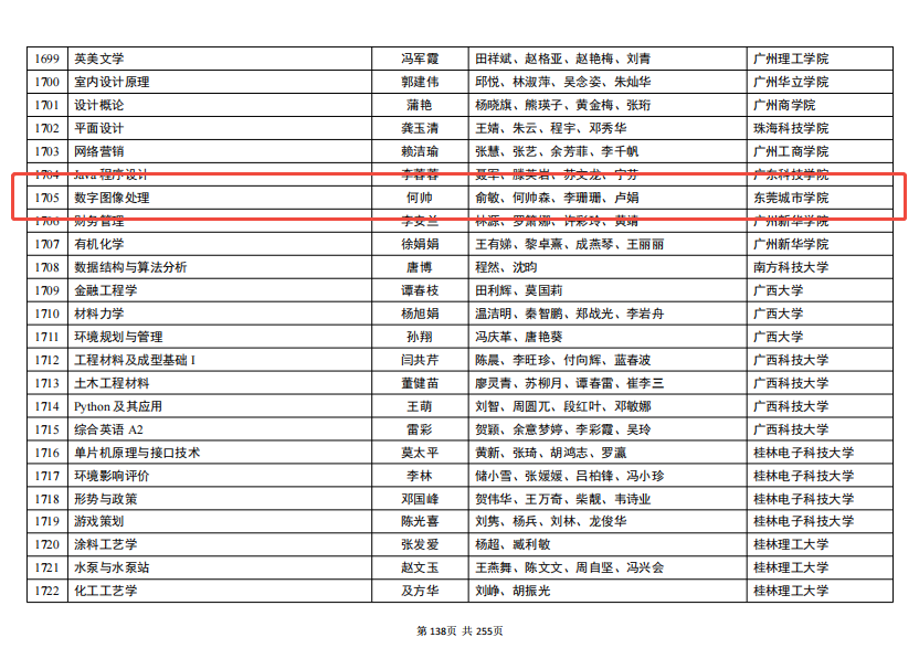8月21日,根据教育部高等教育司公示第三批国家级一流本科课程认定结果的公示,beat365英国官方网站何帅教授团队的《数字图像处理》课程成功入选“线上线下混合式一流课程”,成为beat365官网首门国家级一流本科课程,标志着beat365官网在课程建设与教育教学改革方面取得了历史性重大进展。