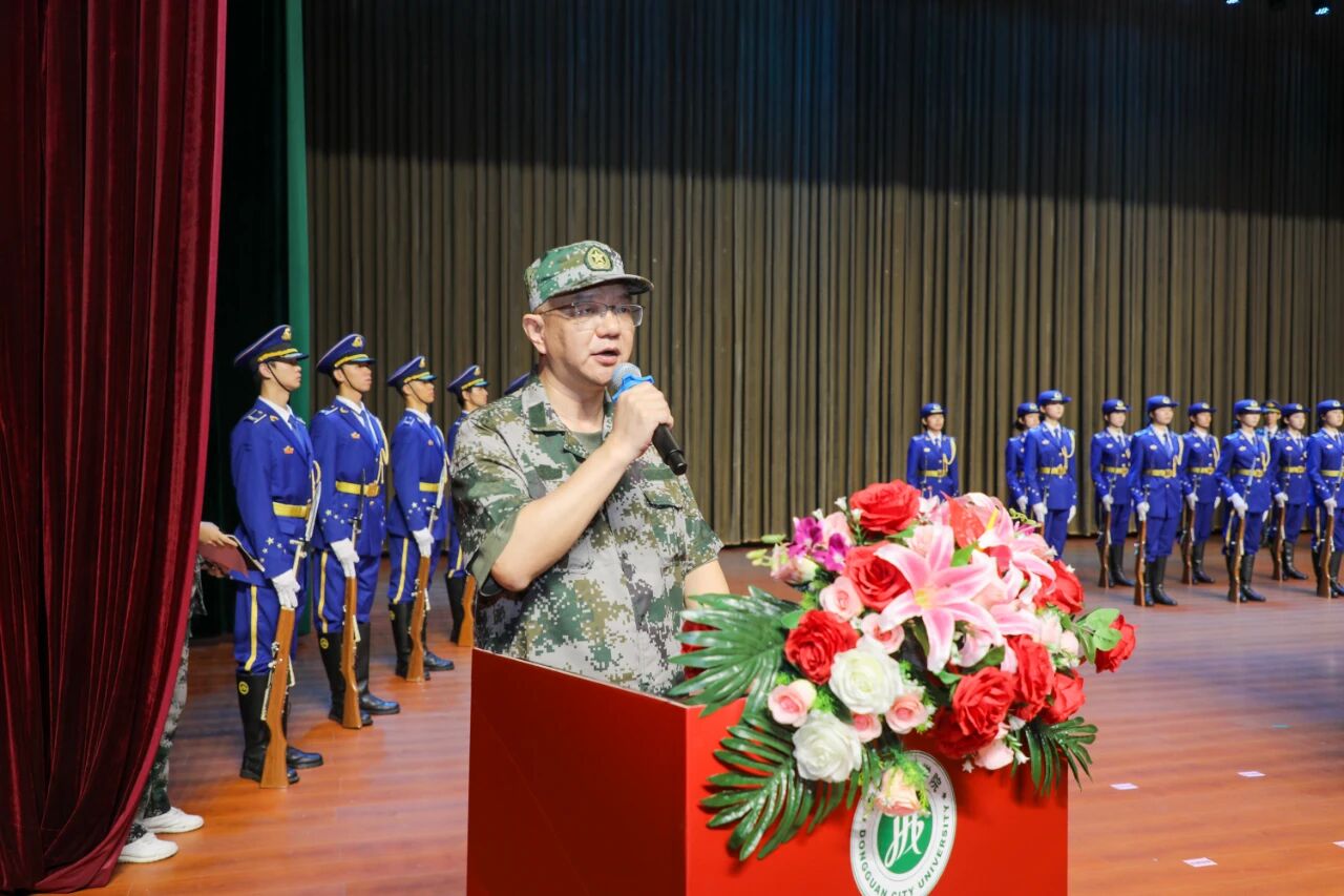 执行校长方伟华作2025级新生军训动员讲话,他首先代表学校欢迎全体新生,向承训教官致以崇高敬意。他指出,军训是大学第一堂必修课,也是全民国防教育的重要部分,既能强身健体,更能锤炼意志、增强集体荣誉感与国家安全意识,而今年正值中国人民抗日战争暨世界反法西斯战争胜利80周年,此次军训既是对历史的回望致敬更是对抗战精神的传承实践。方伟华执行校长还提到,往届城院新生在军训中展现出良好风貌,以实际行动诠释誓言,彰显“厚德务实,知行合一”的校训精神。为此,他提出四点希望,一要吃苦耐劳,锤炼坚强意志。二要严守纪律,培养优良作风。三要团结协作,增强集体观念。四要科学参训,确保安全有序。方伟华执行校长还以“九三”阅兵的民族力量和青年的时代使命激励大家,鼓励各位参训学员像战士一样迎接挑战,追逐青春梦想。最后,方伟华执行校长预祝2025级新生军训圆满成功,祝愿每位同学训有所成、学有所获,在城院开启无悔青春征程。