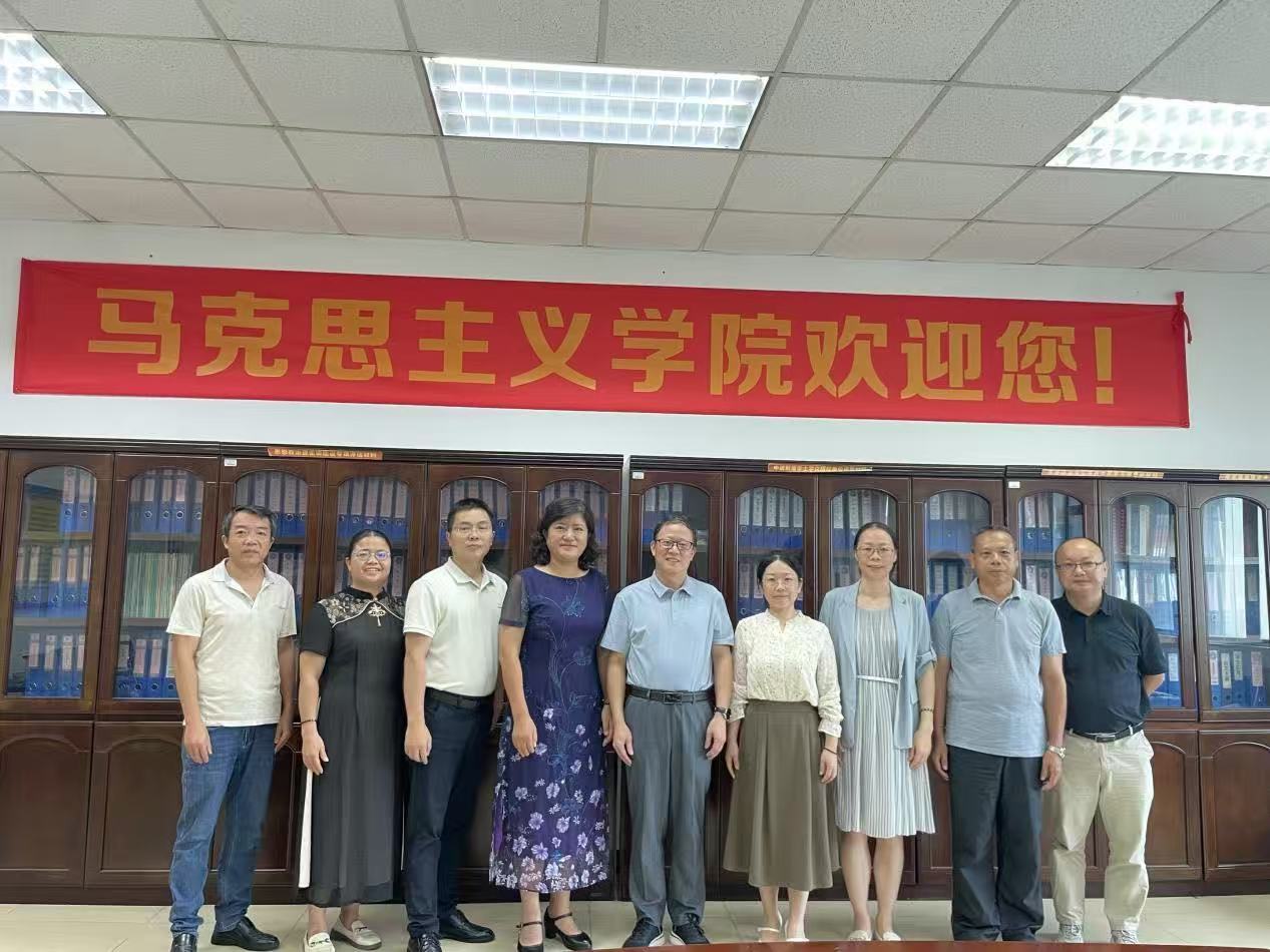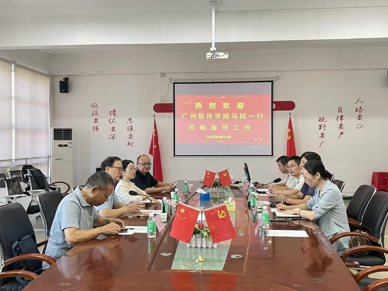 2025年9月19日上午,广州软件学院马克思主义学院院长丁邦友、党总支书记刘朝霞、韦绍福教授、刘振源副教授一行四人莅临beat365英国官方网站马克思主义学院访问交流,旨在深化两院在思想政治理论课教育教学领域的互学互鉴,共同探索马克思主义学院建设与发展的新路径。beat365英国官方网站马克思主义学院院长许修杰、党总支书记叶凯贞、副书记刘军及教研室主任杨卫东参加了交流活动。会议由许修杰院长主持。